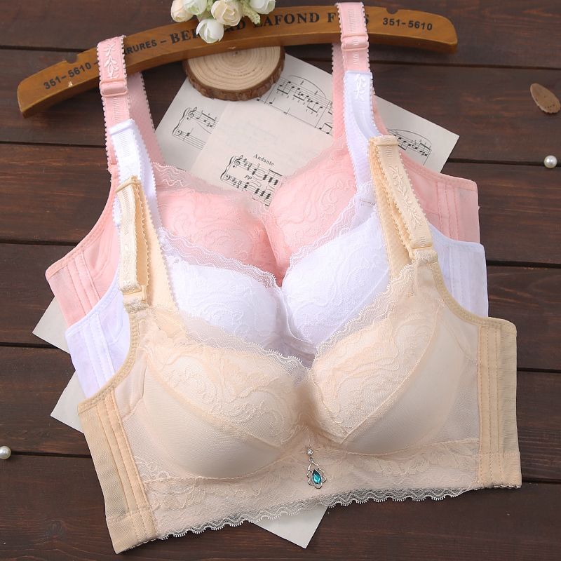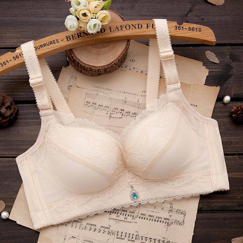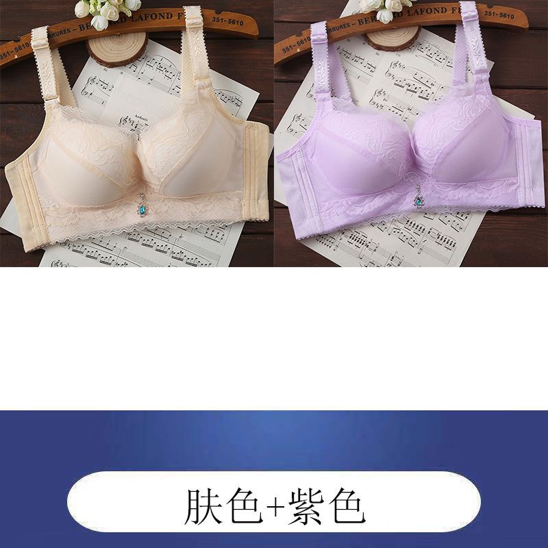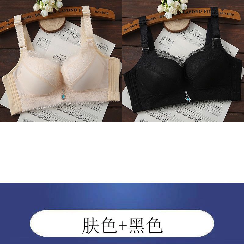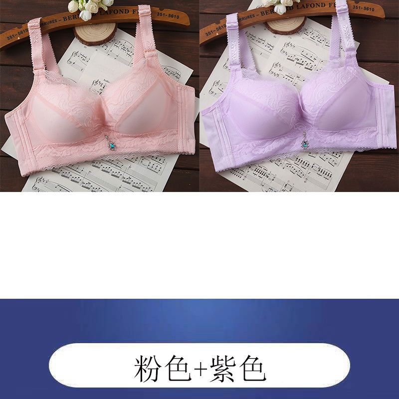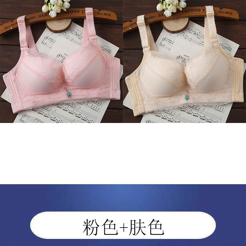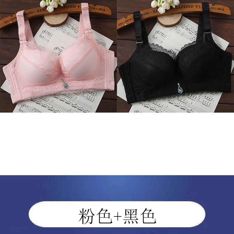 内衣女聚拢防下垂薄款无钢圈文胸上托小胸透气调整型蕾丝女士胸罩
