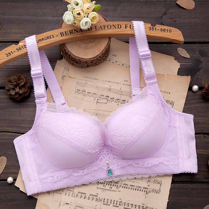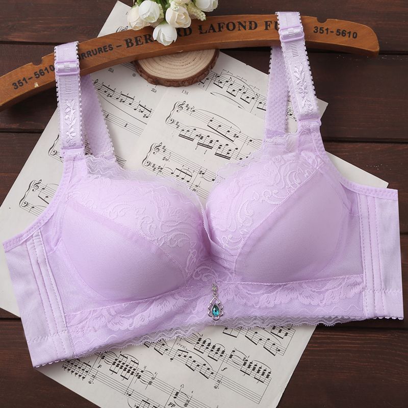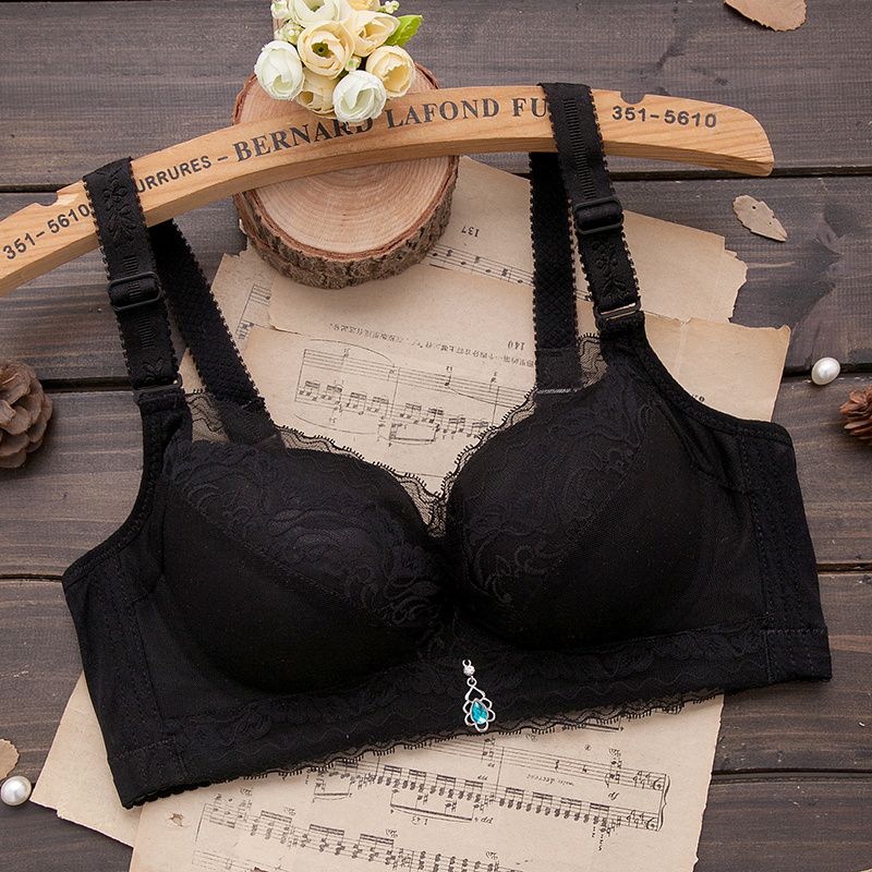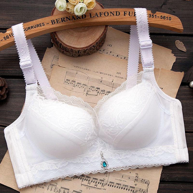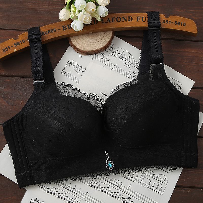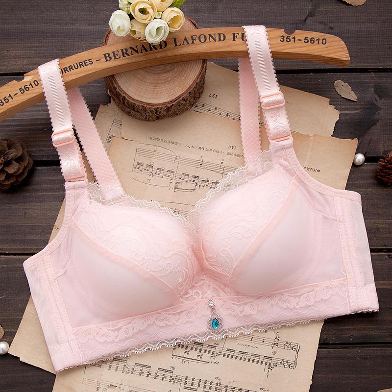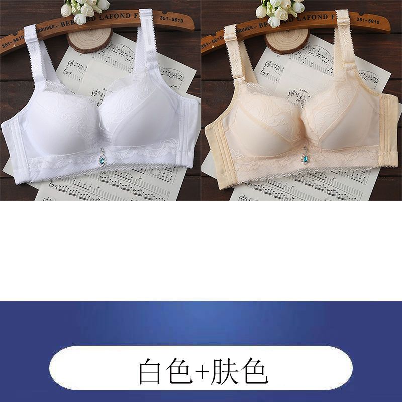 内衣女聚拢防下垂薄款无钢圈文胸上托小胸透气调整型蕾丝女士胸罩