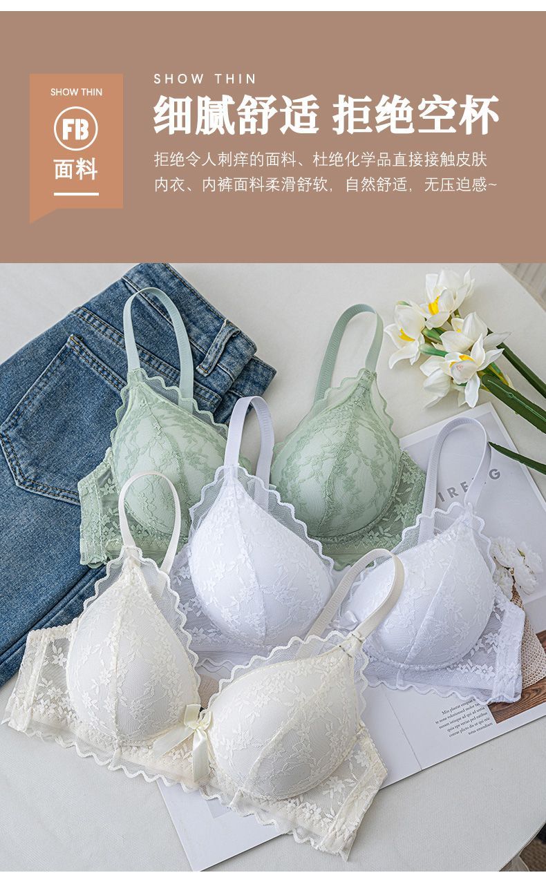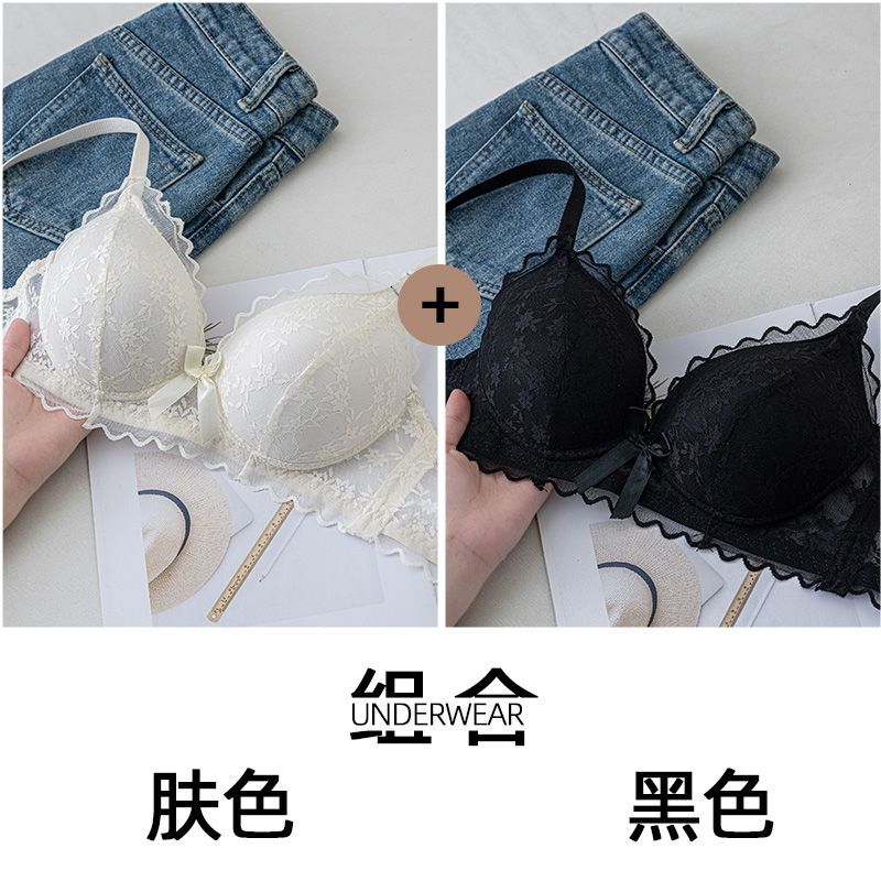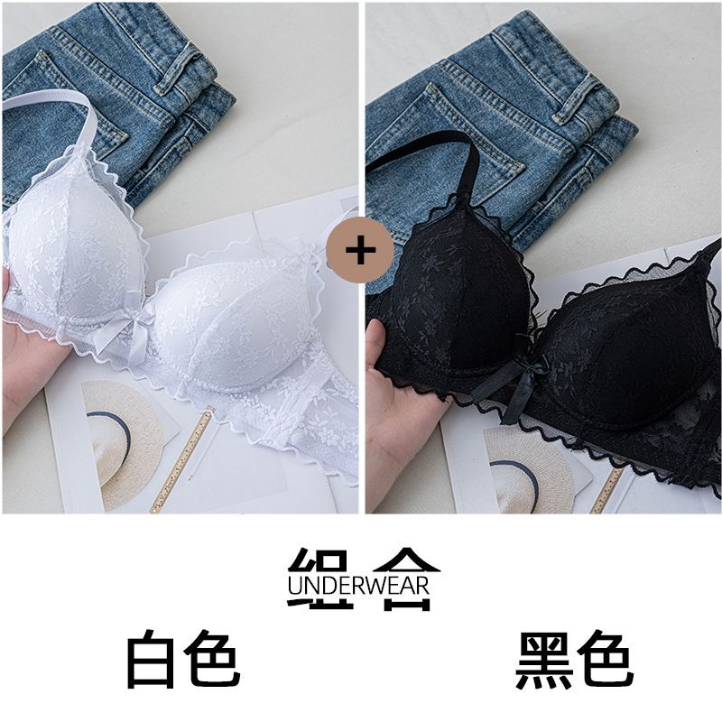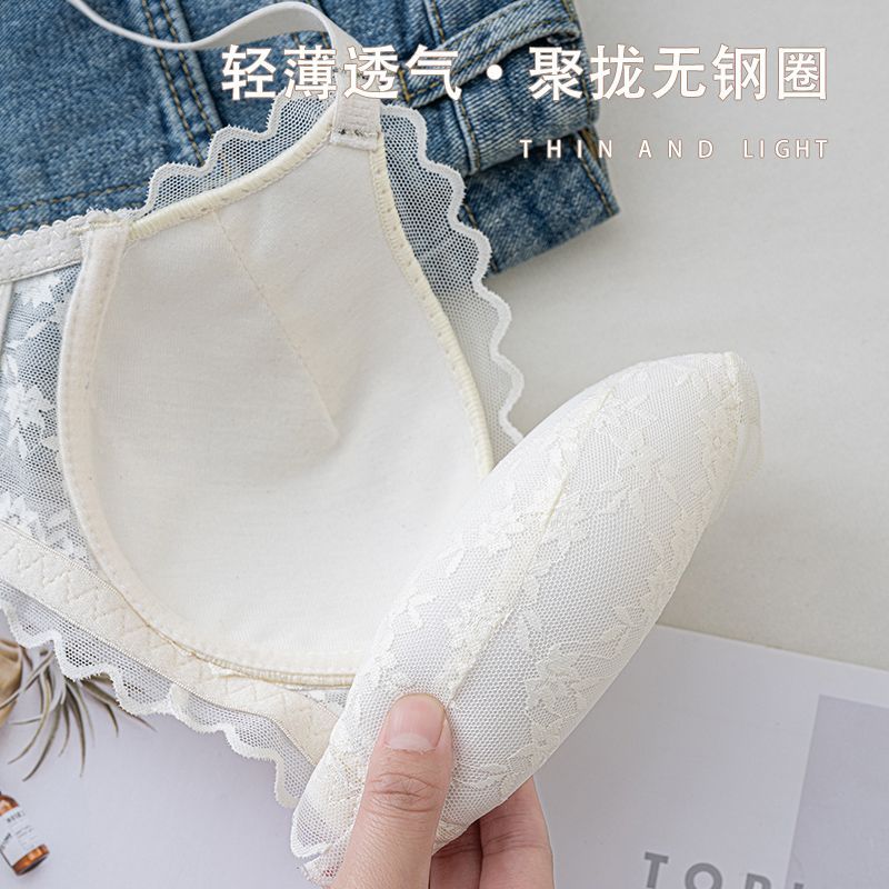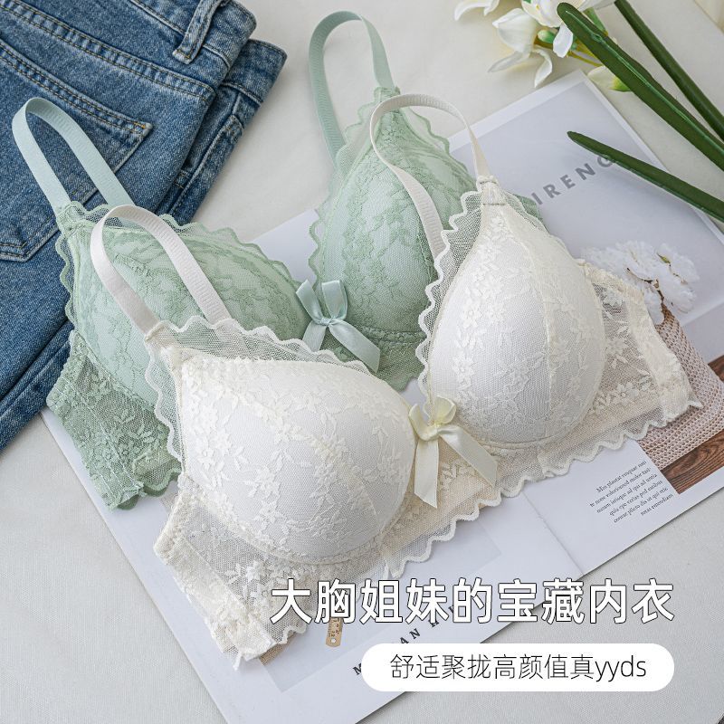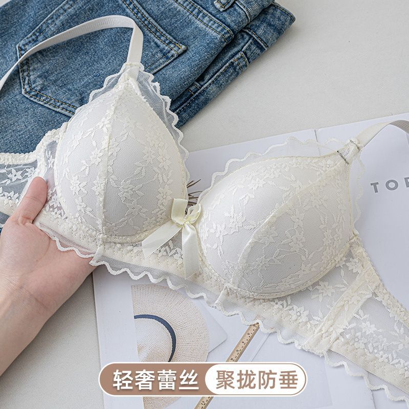 内衣女小胸聚拢无钢圈薄款蕾丝性感纯欲少女显胸上托防下垂文胸罩