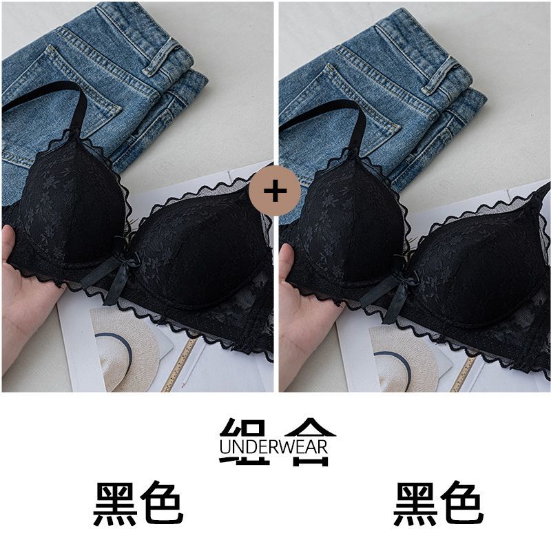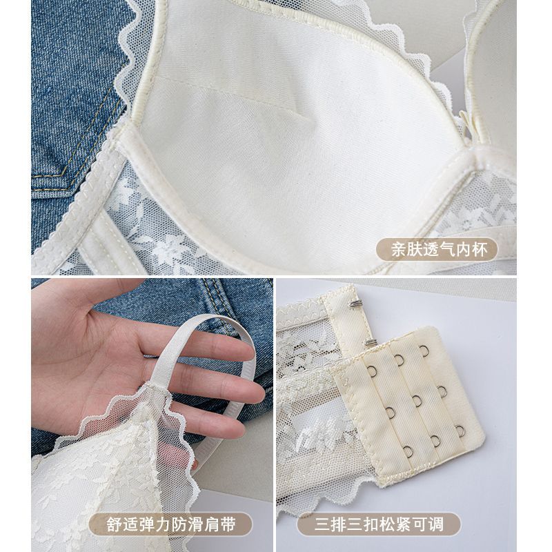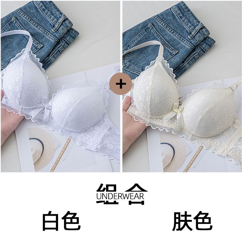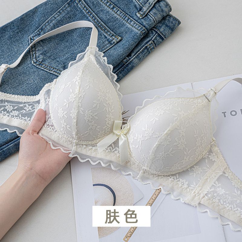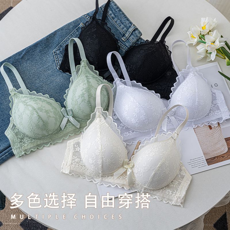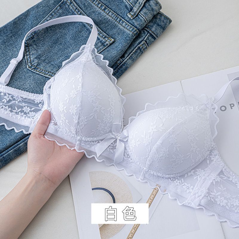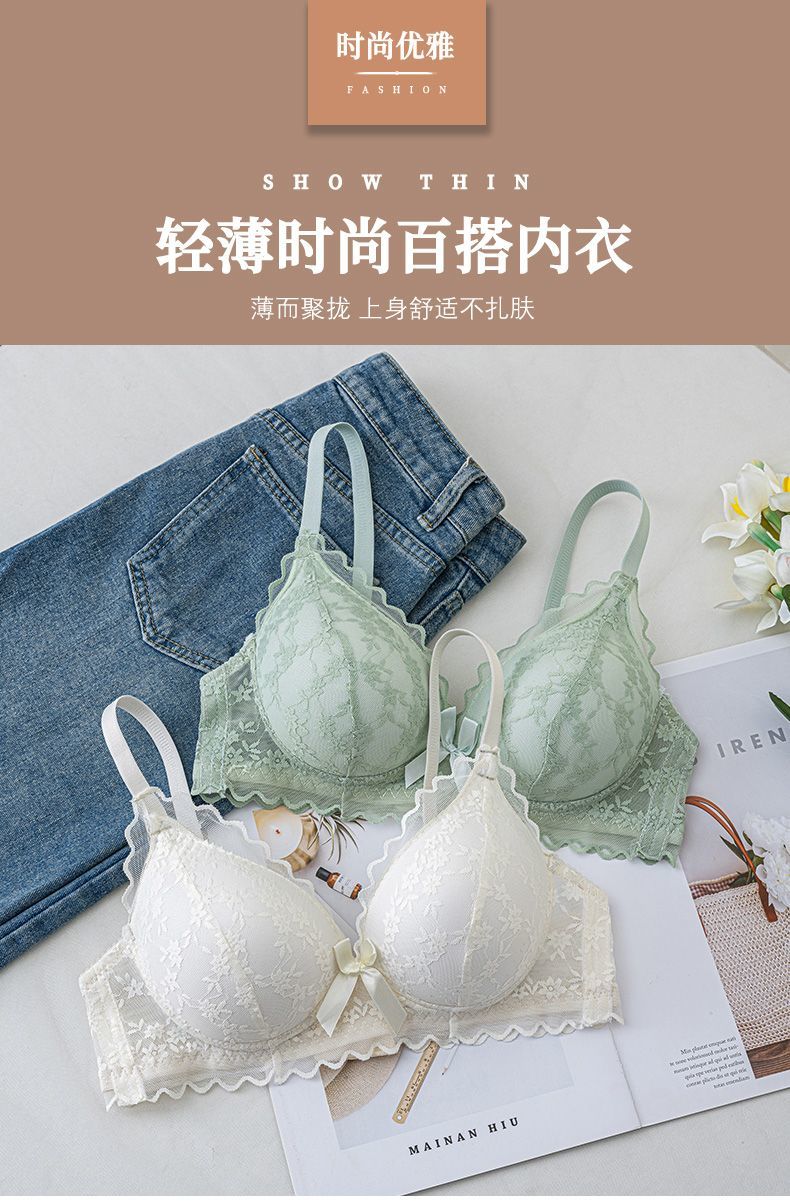 内衣女小胸聚拢无钢圈薄款蕾丝性感纯欲少女显胸上托防下垂文胸罩