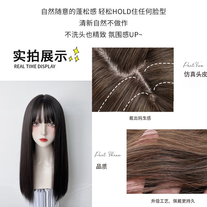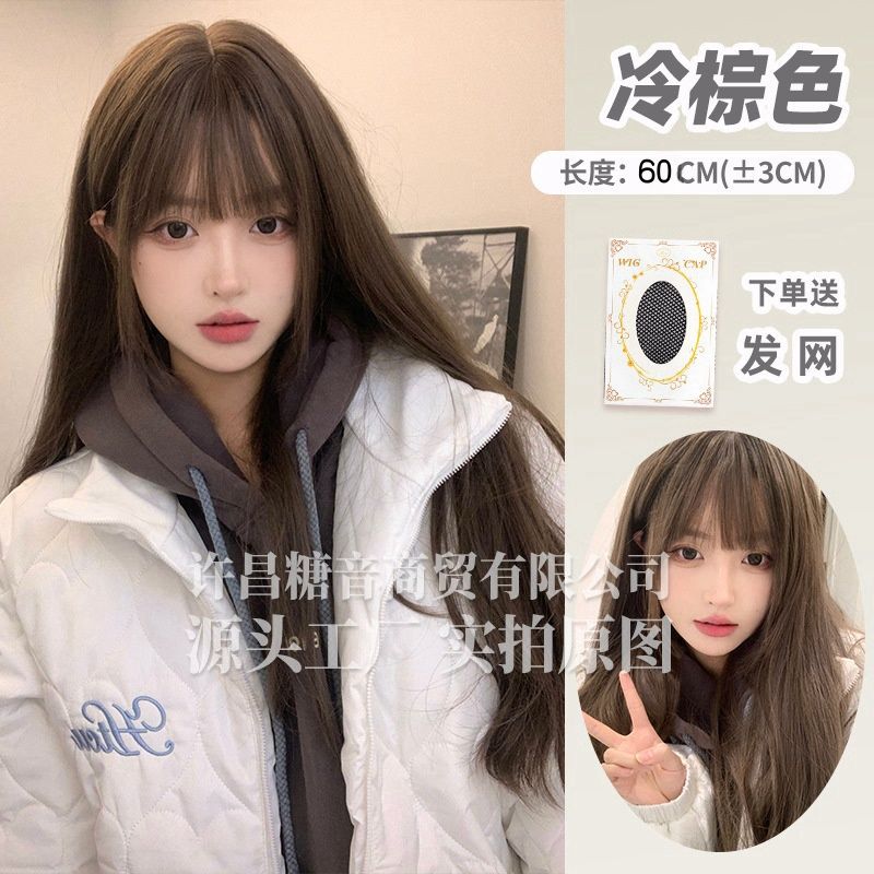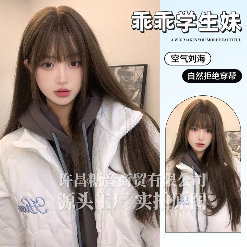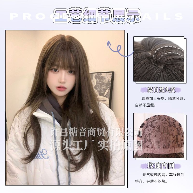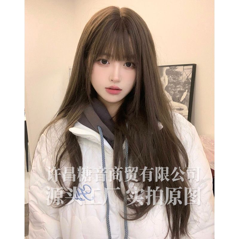 糖音假发女长发自然全头套长直发自然空气刘海假发套网红中长发