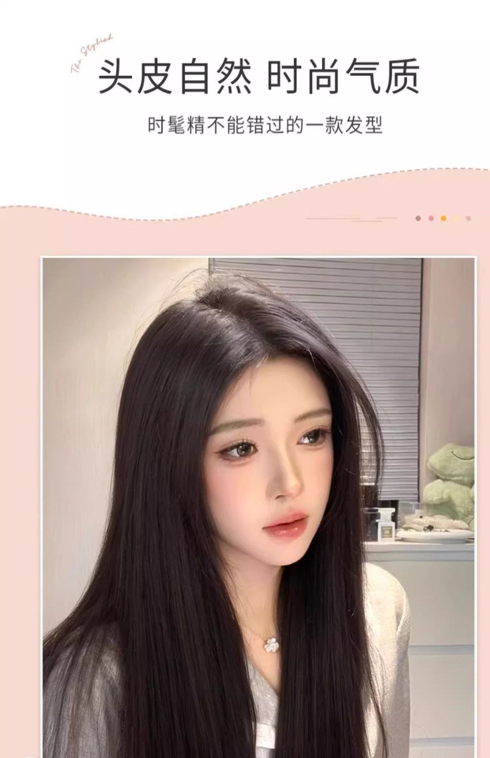 头套女长发真发头套前额蕾丝无痕中分仿真网红自然蓬松气质长直发