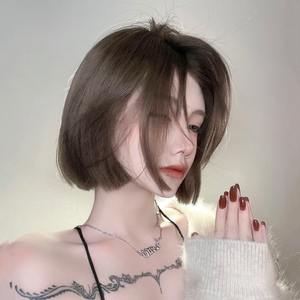 假毛女中短发型中分自然少女全头套式初恋头时尚bobo头气质圆脸