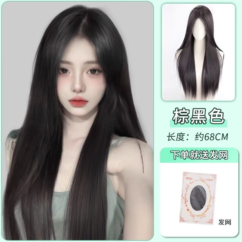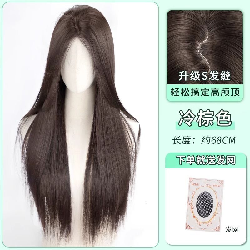 假发女长发八字刘海蓬松自然圆脸中长假发套女全头逼真中分长直发