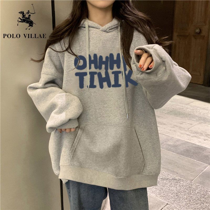 100%抗起球连帽卫衣女秋冬高街原宿风多巴胺特色宽松加绒加厚上衣