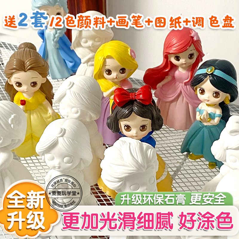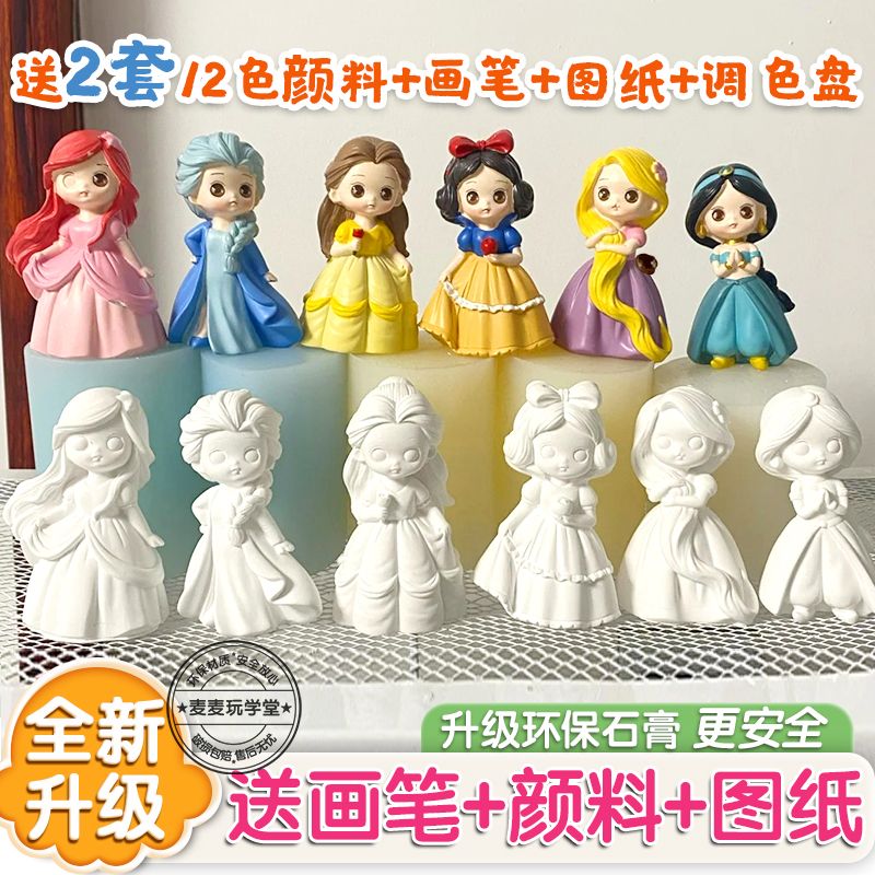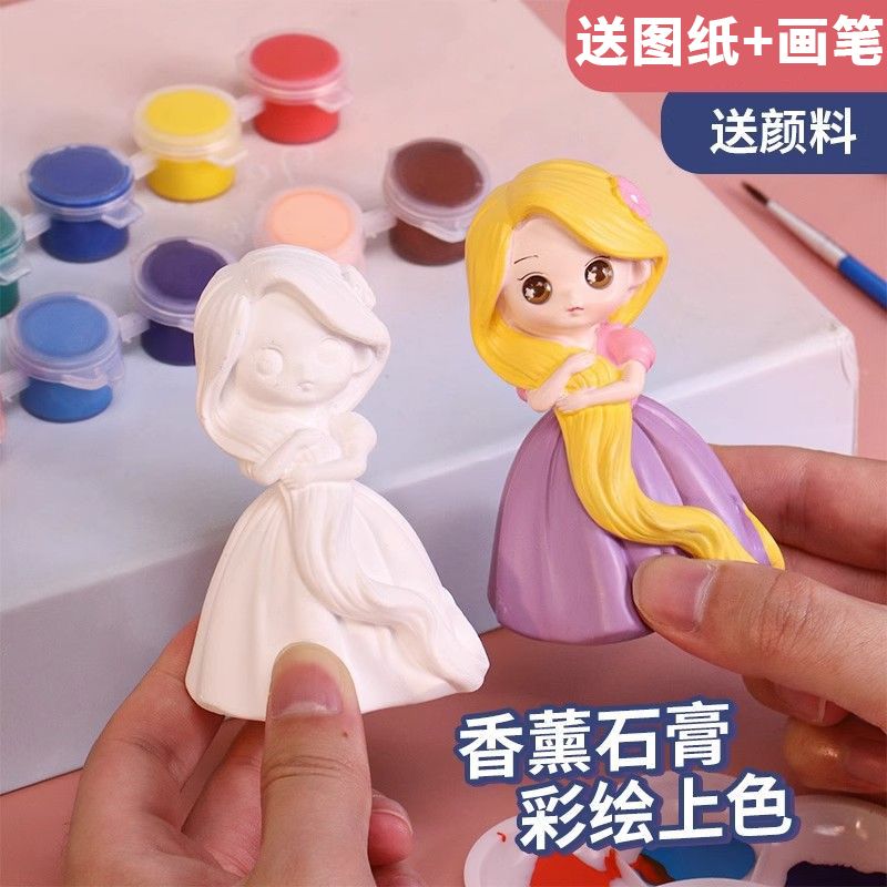 石膏公主娃娃儿童diy手工彩绘涂鸦白雪艾莎公主白胚立体娃娃涂色
