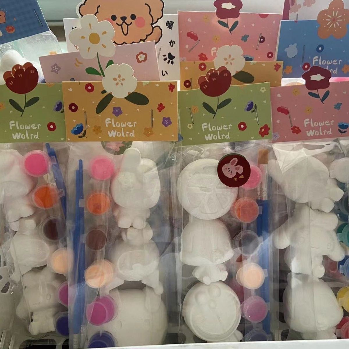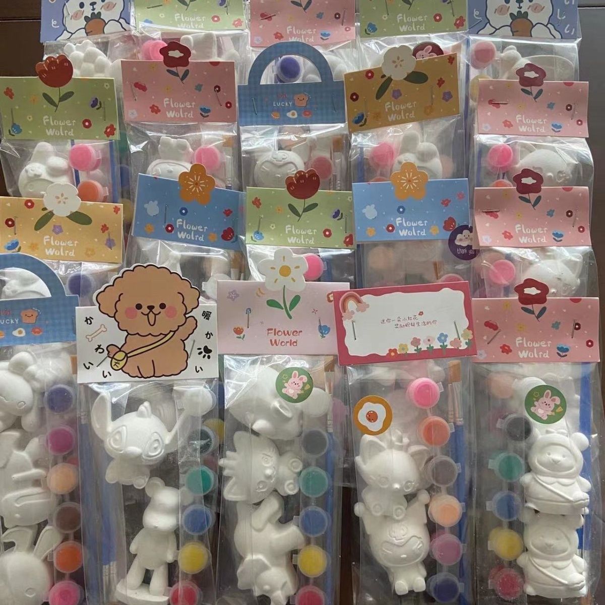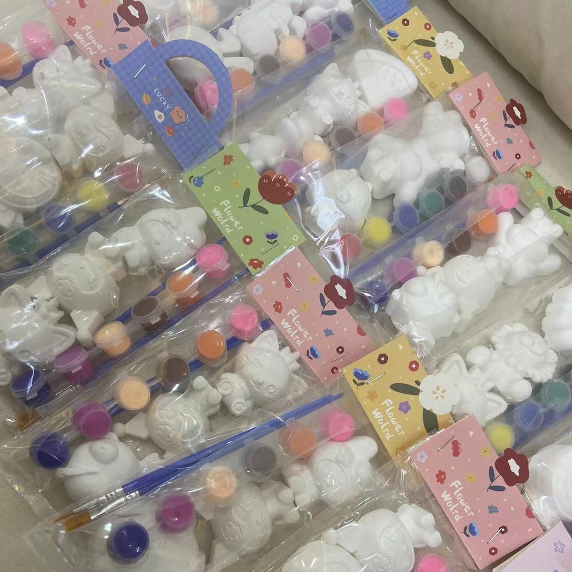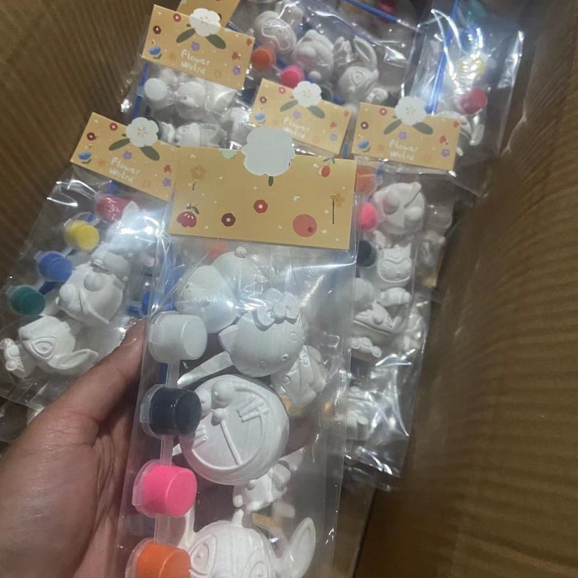 批发公园夜市儿童石膏娃娃独立摆摊袋装包装diy手工彩绘涂色