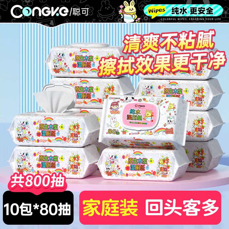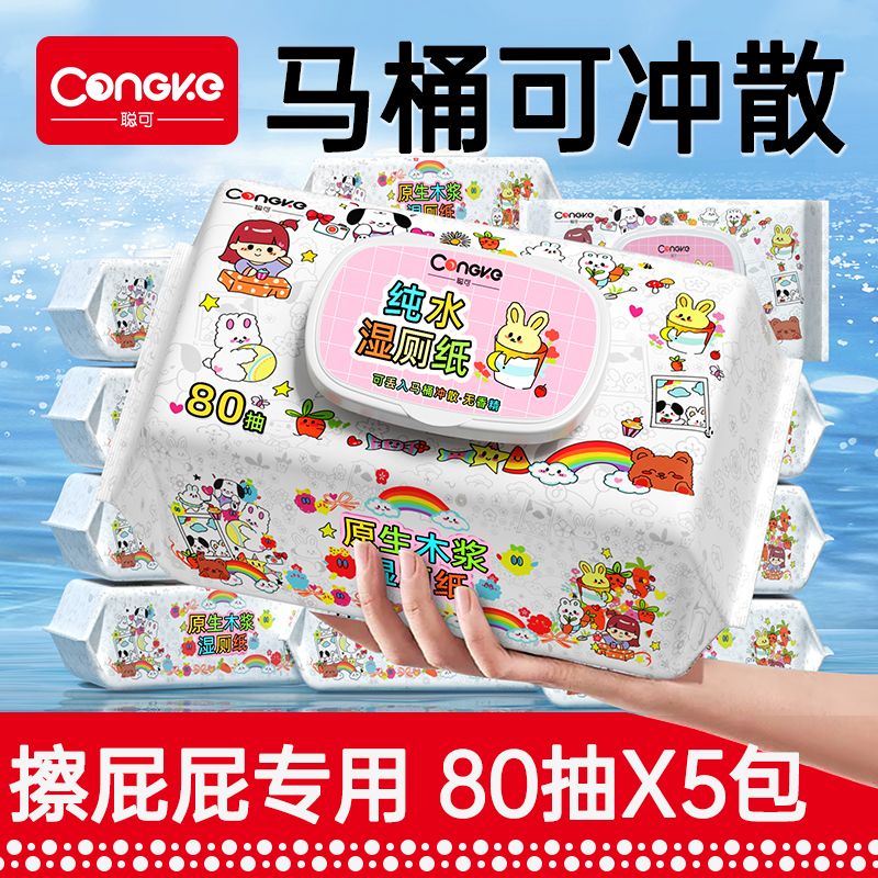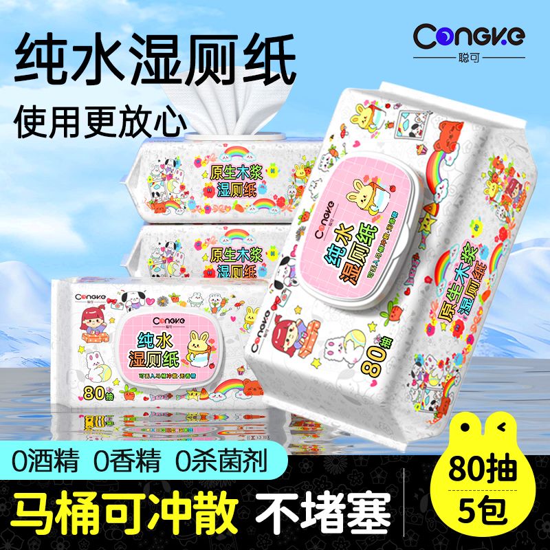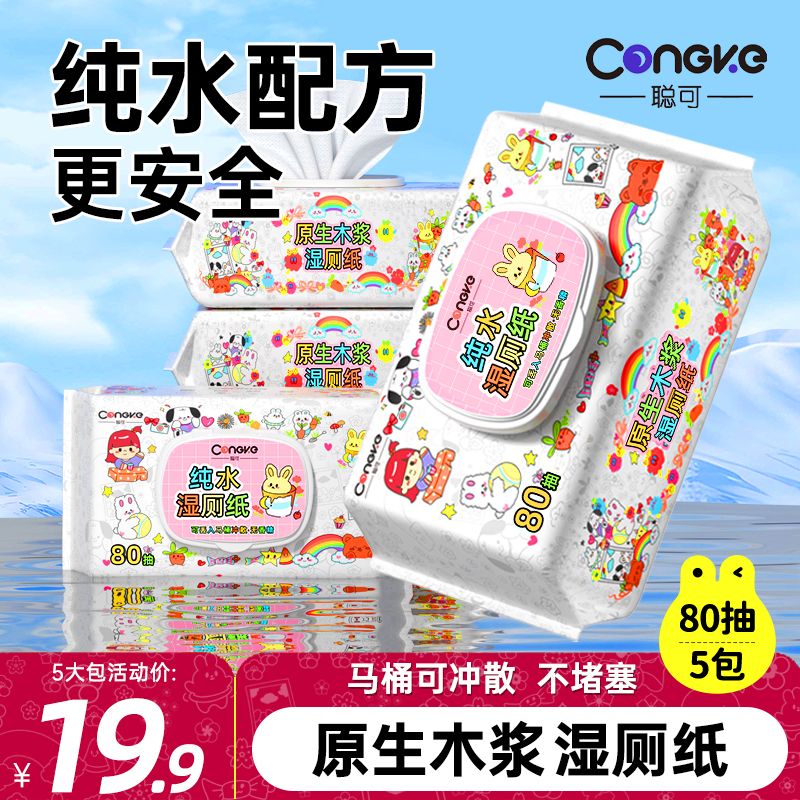 湿厕纸大包80抽家庭实惠装男女厕所清洁湿巾女性专用擦屁屁湿纸巾
