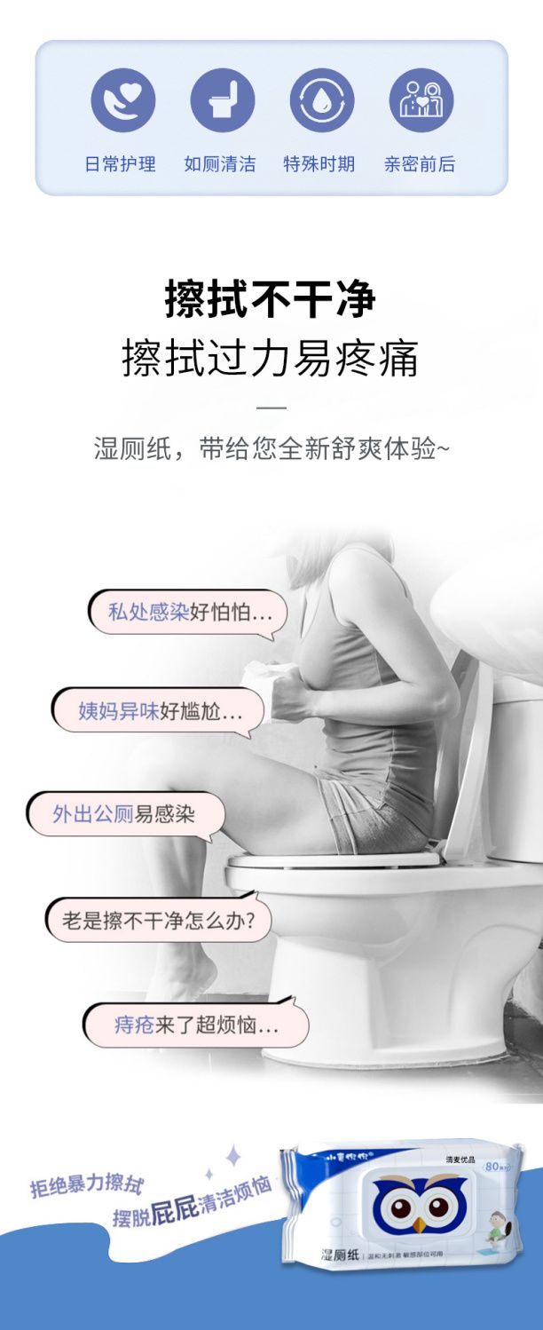 | 1 big bag [owl wet toilet paper] aluminum film water locking type(1大包【猫头鹰湿厕纸】铝膜锁水款) | USD $3.73 | 99999 piece available |