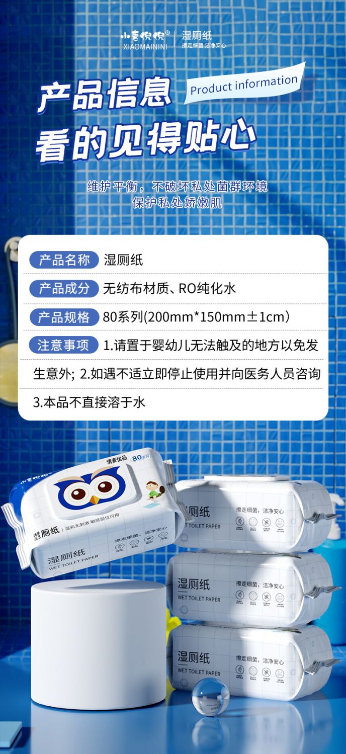 | 5 big bags [owl wet toilet paper] aluminum film water locking model affordable(5大包【猫头鹰湿厕纸】铝膜锁水款实惠) | USD $8.77 | 99999 piece available |