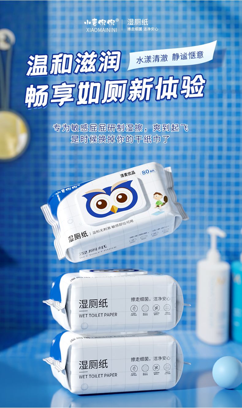 | 3 big bags [owl wet toilet paper] aluminum film water locking household(3大包【猫头鹰湿厕纸】铝膜锁水款家用) | USD $7.09 | 99999 piece available |
