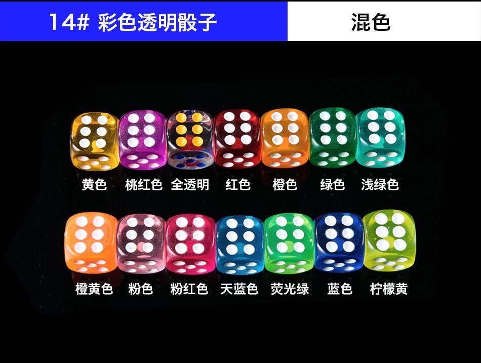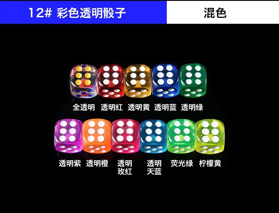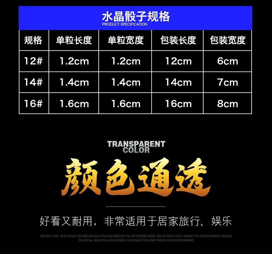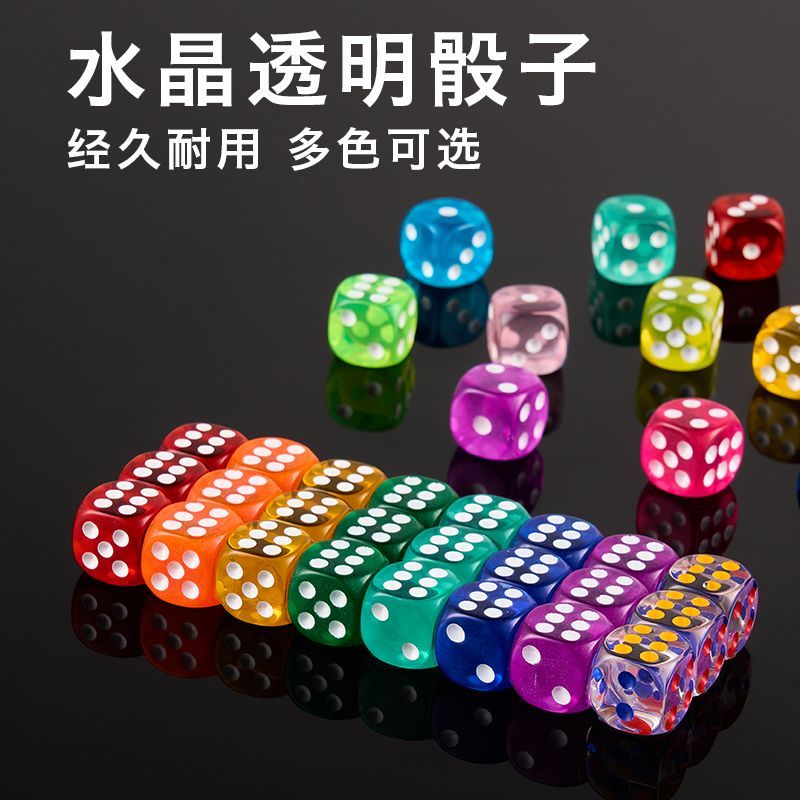 水晶透明彩色骰子儿童玩具色子高档筛子粒大号麻将机酒吧塑料骰子