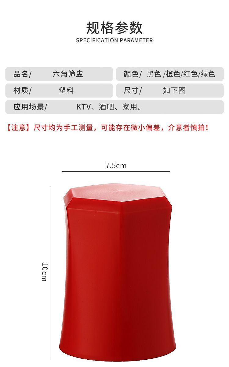 | 六角筛盅【红色】送10粒骰子 | USD $0.89 | 99999 piece available |