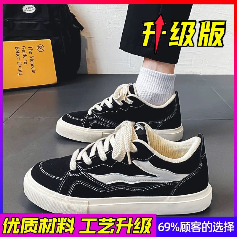 男鞋2024新款夏季透气百搭休闲板鞋学生布鞋平底运动黑色ins潮鞋