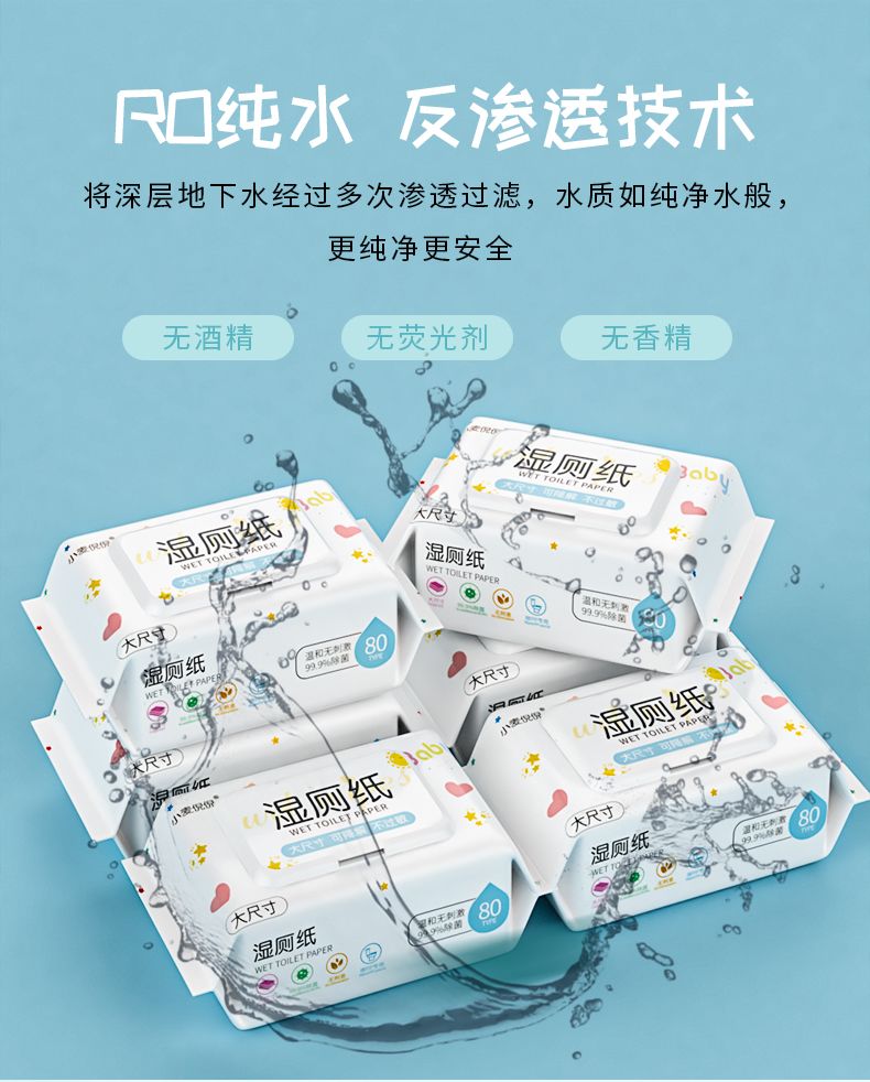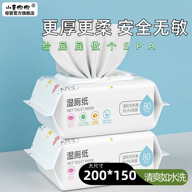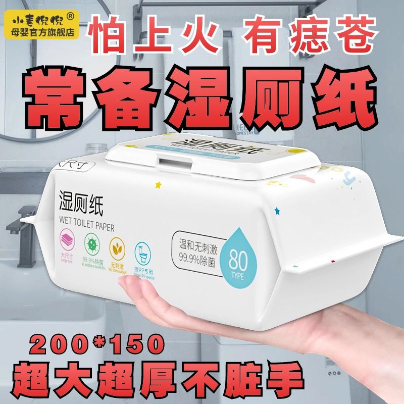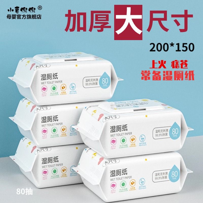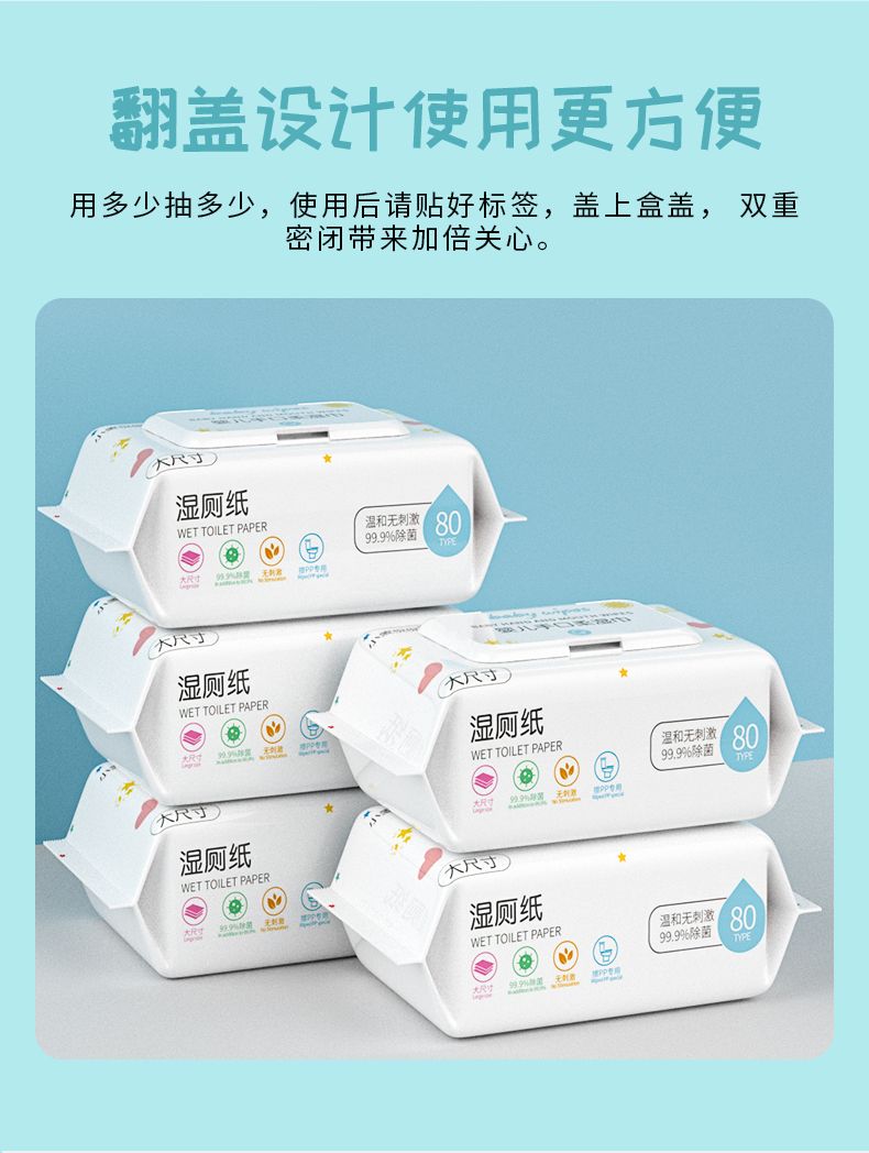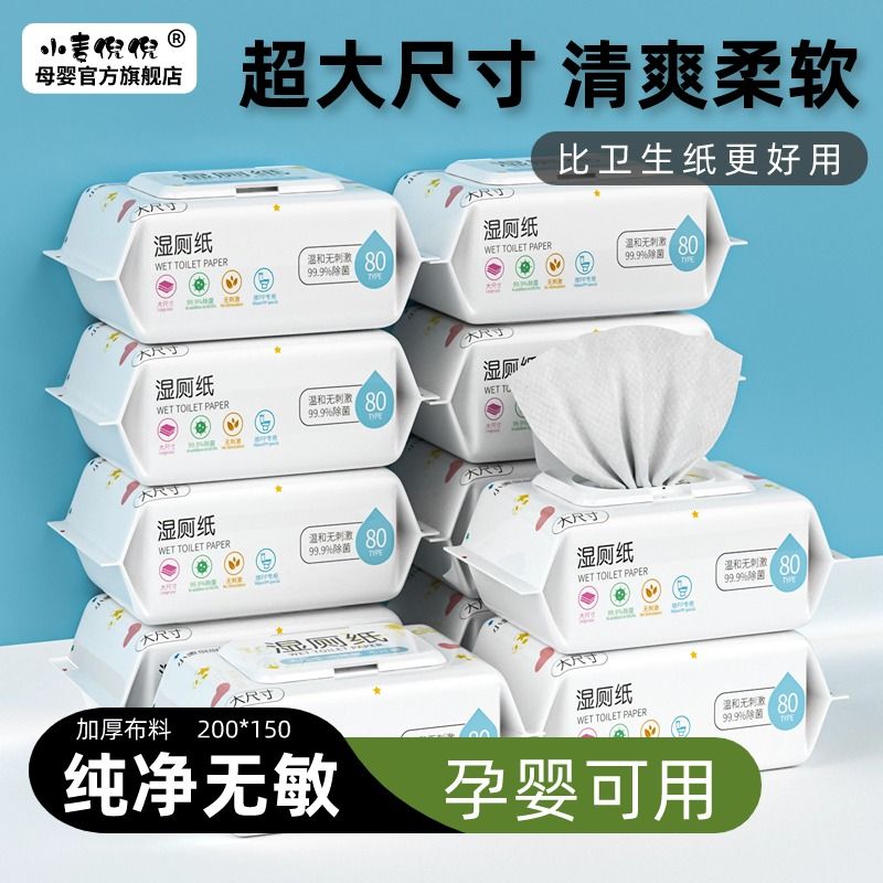 湿厕纸大包80抽家庭装厕所湿巾纸女性成人孕妇宝宝通用湿纸巾