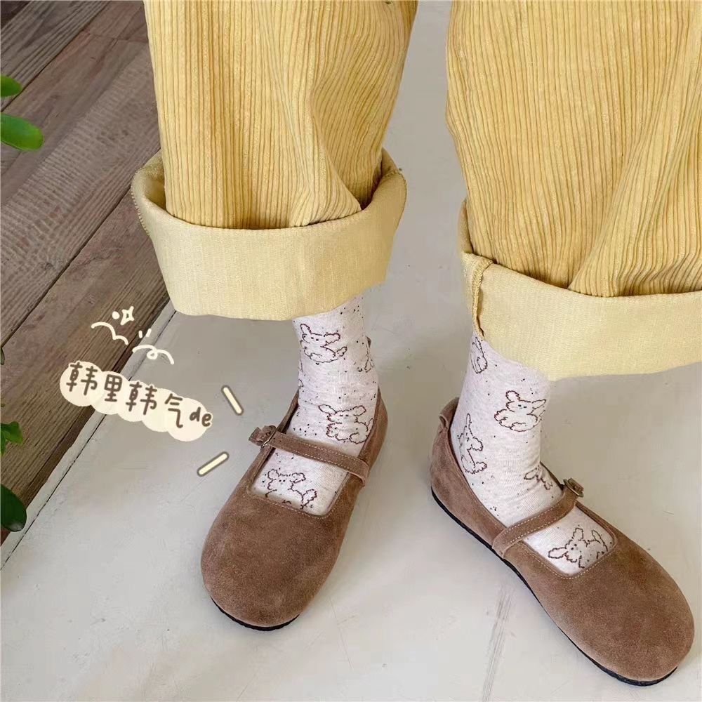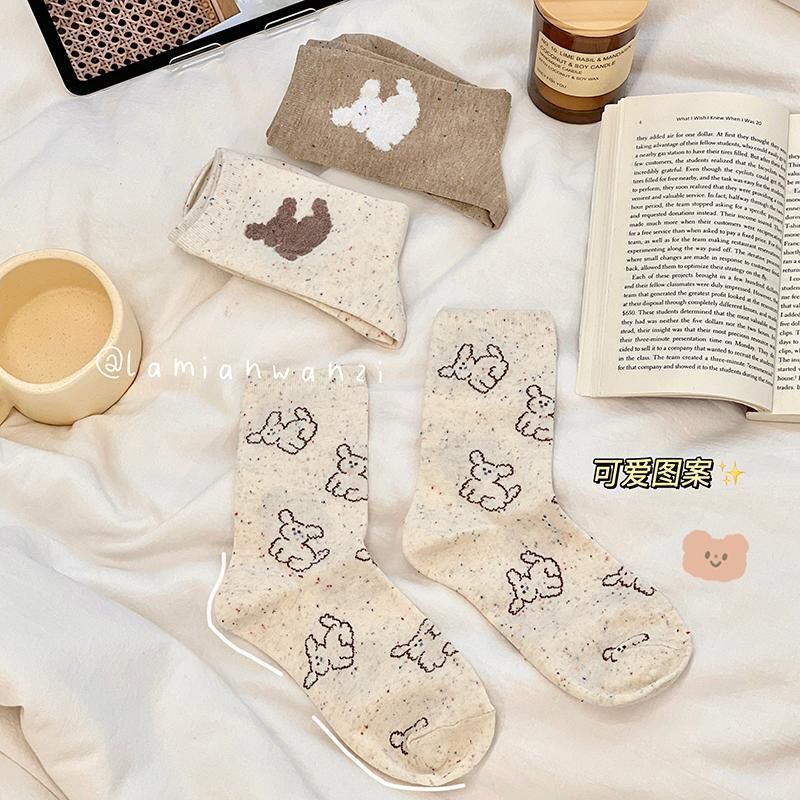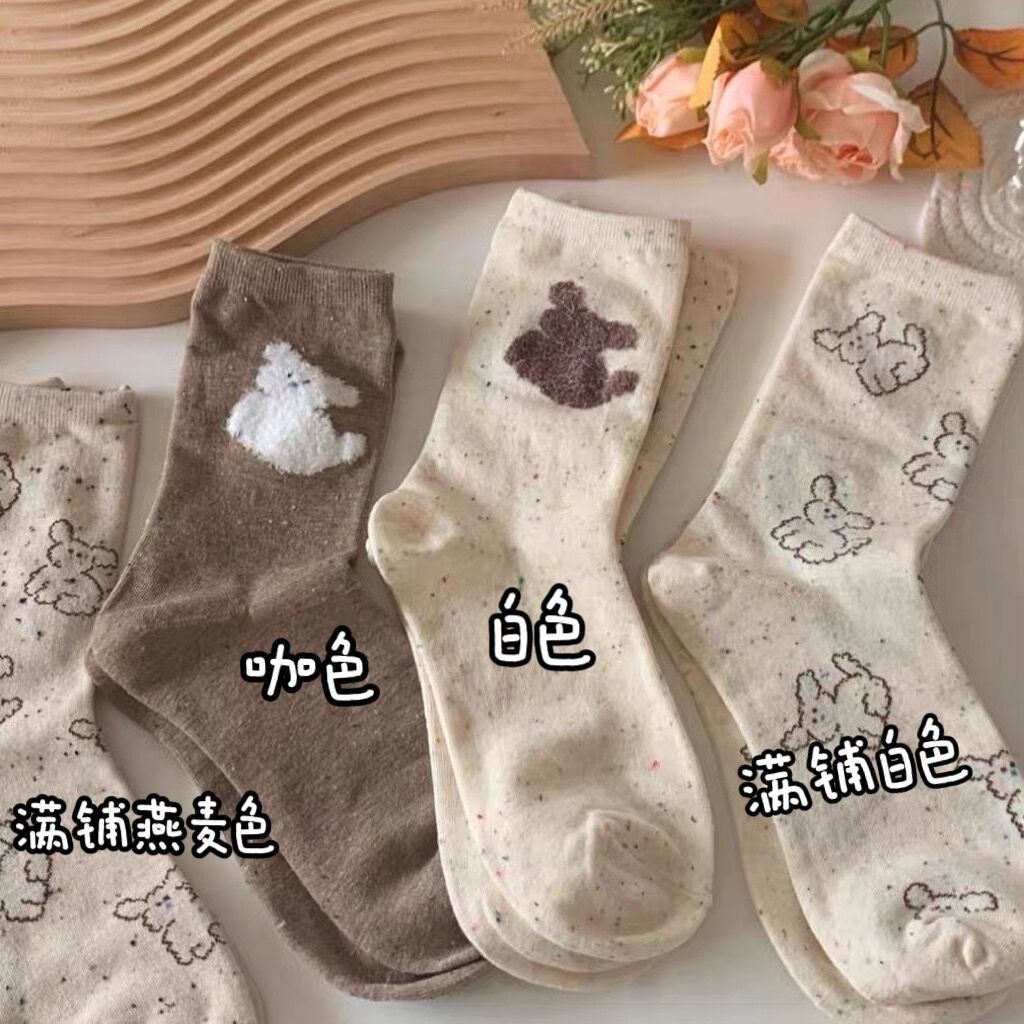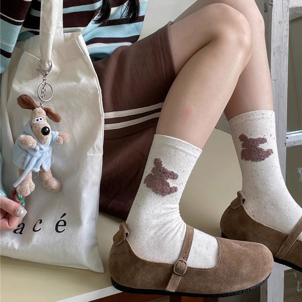 暖秋多巴胺棕色袜子可爱百搭卡通韩版中筒点子云朵狗狗学院ins
