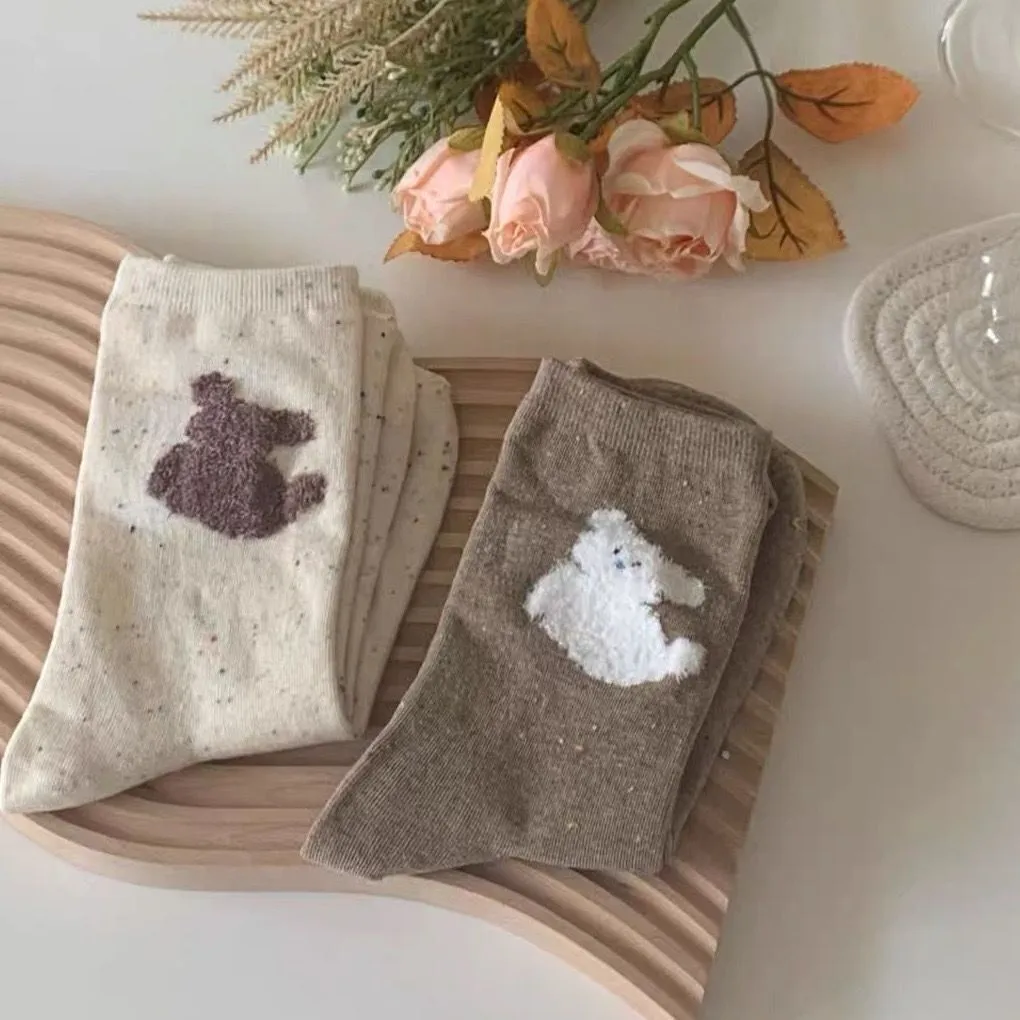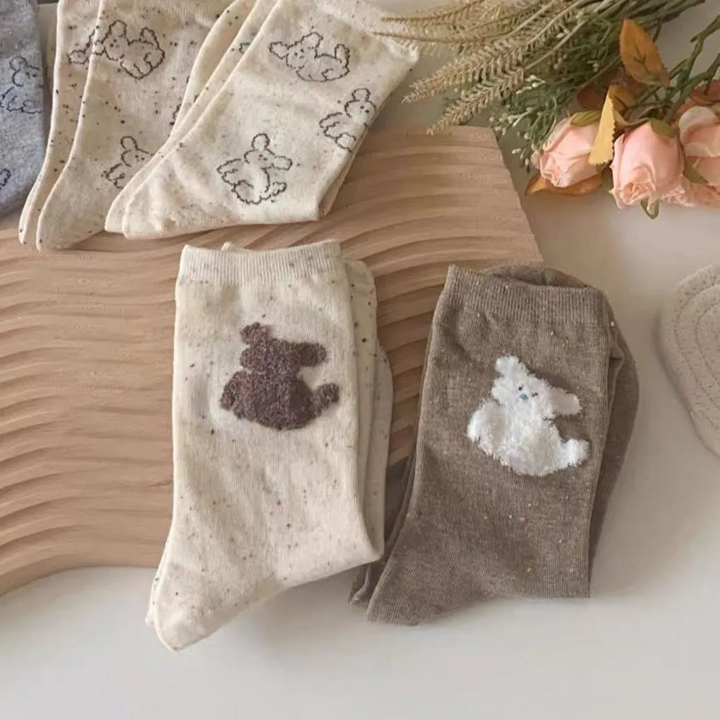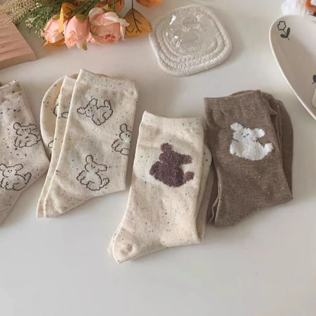 暖秋多巴胺棕色袜子可爱百搭卡通韩版中筒点子云朵狗狗学院ins