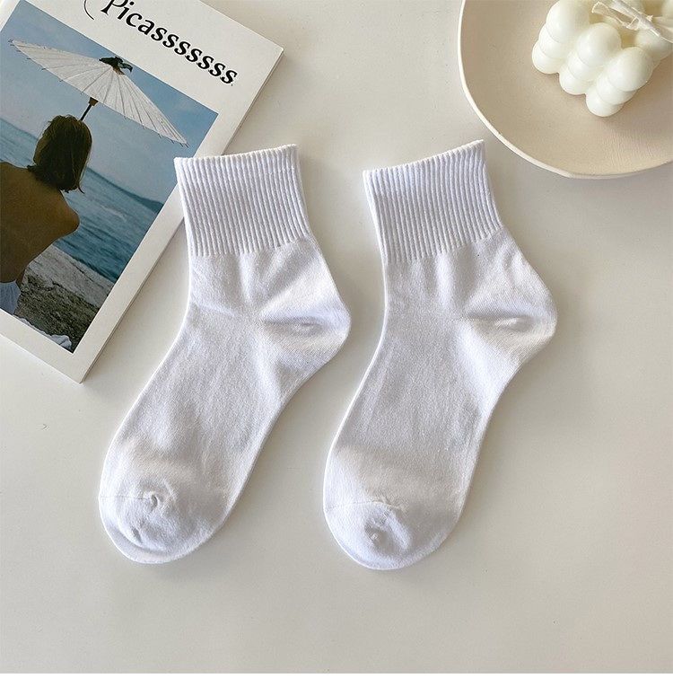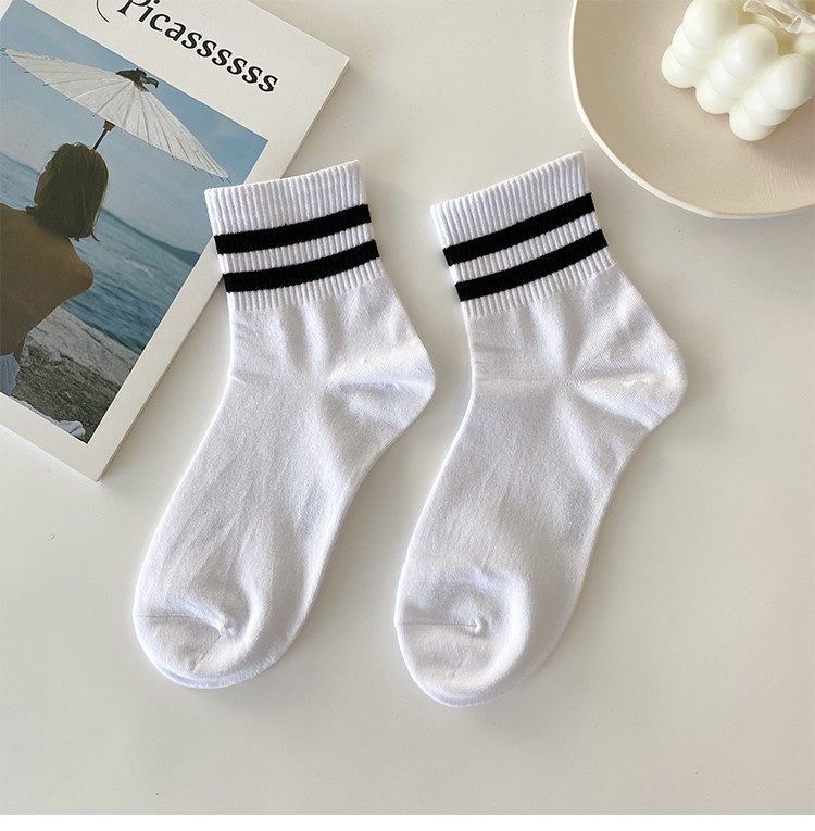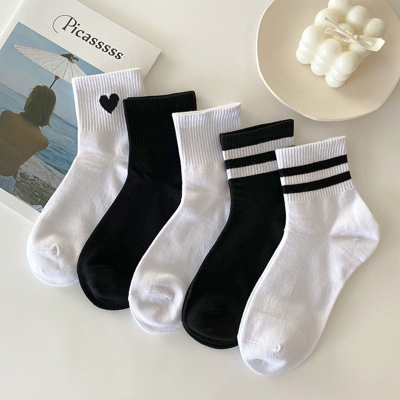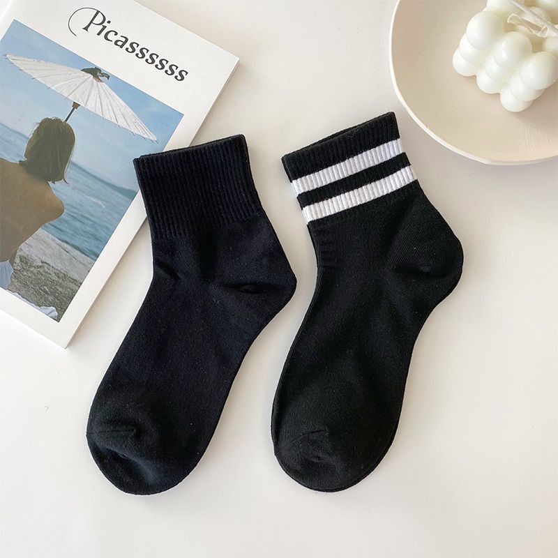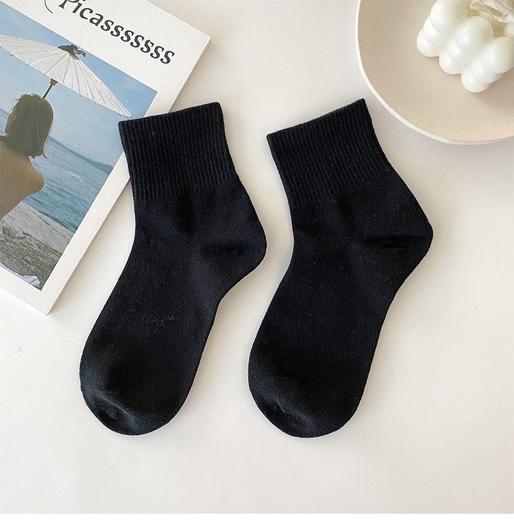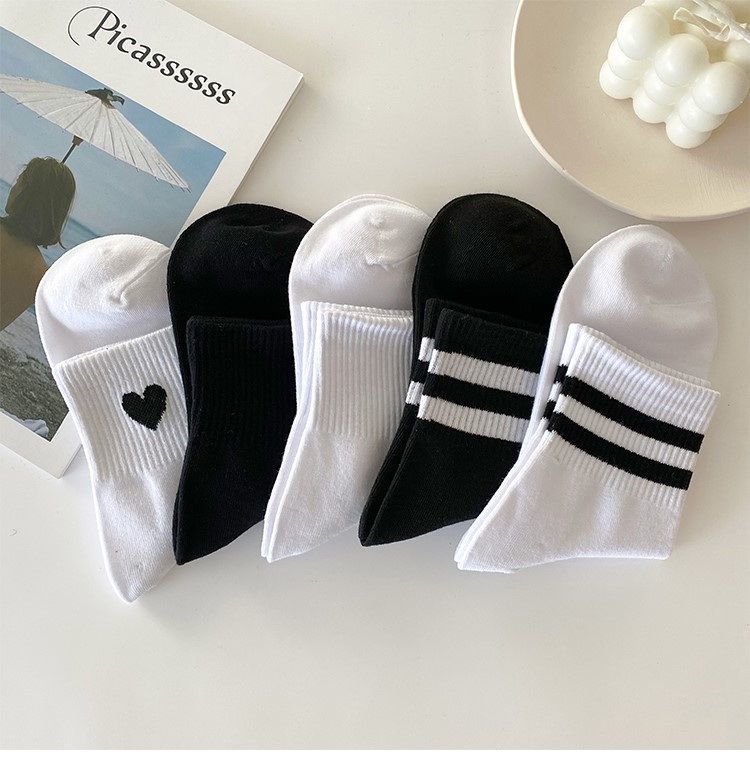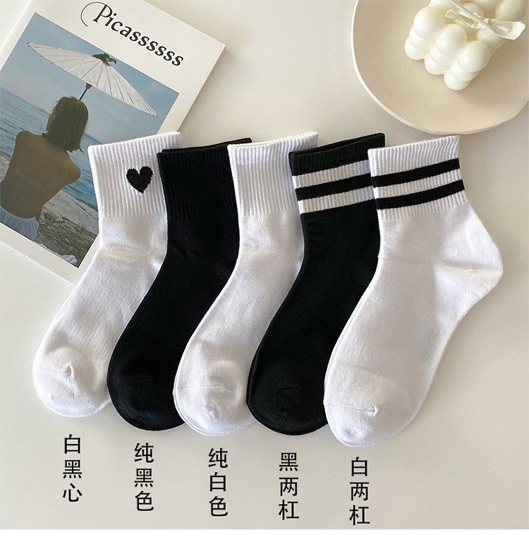 ins潮袜子女中筒袜秋冬款纯色黑白学生棉质透气吸汗不起球长筒袜