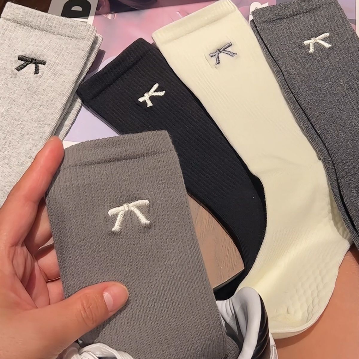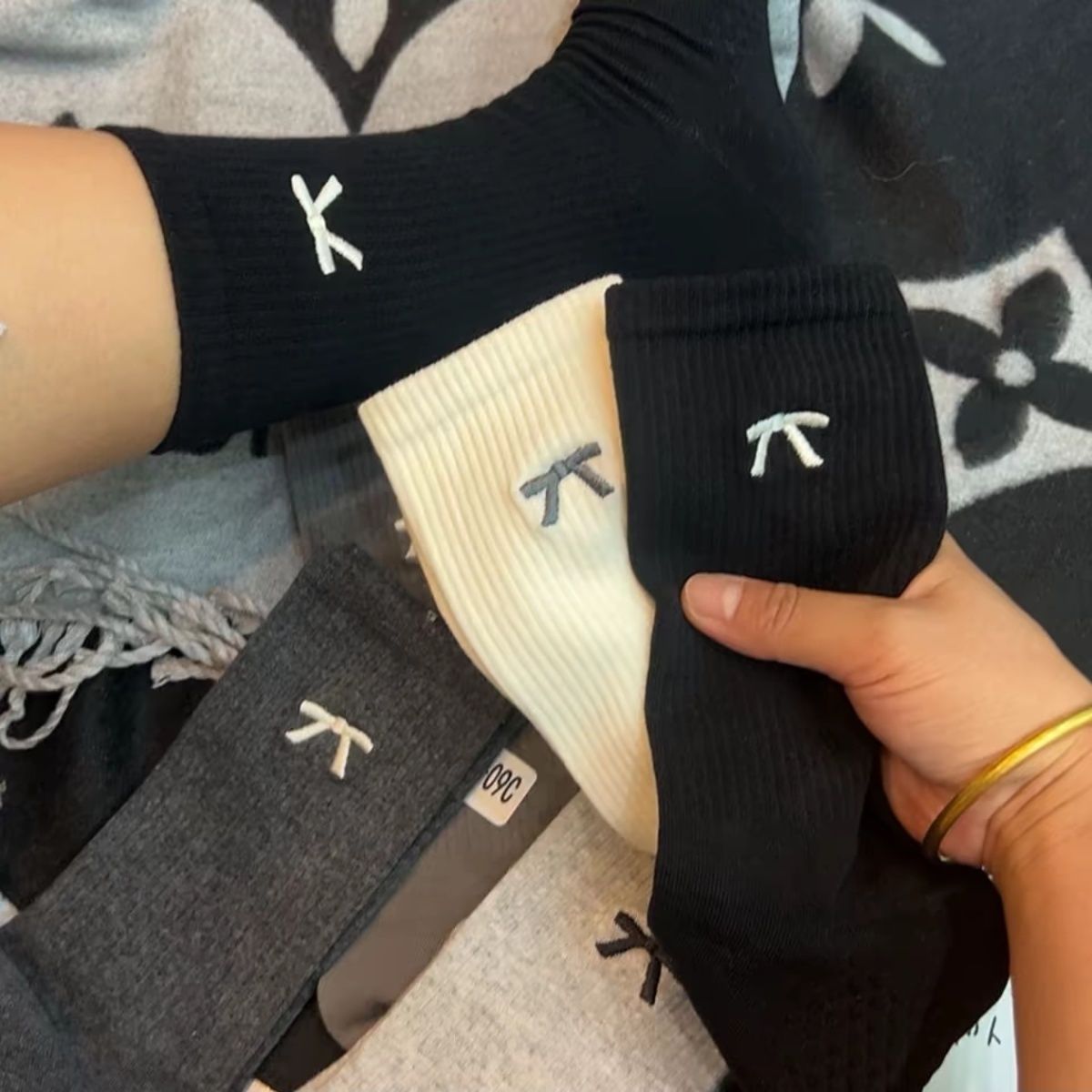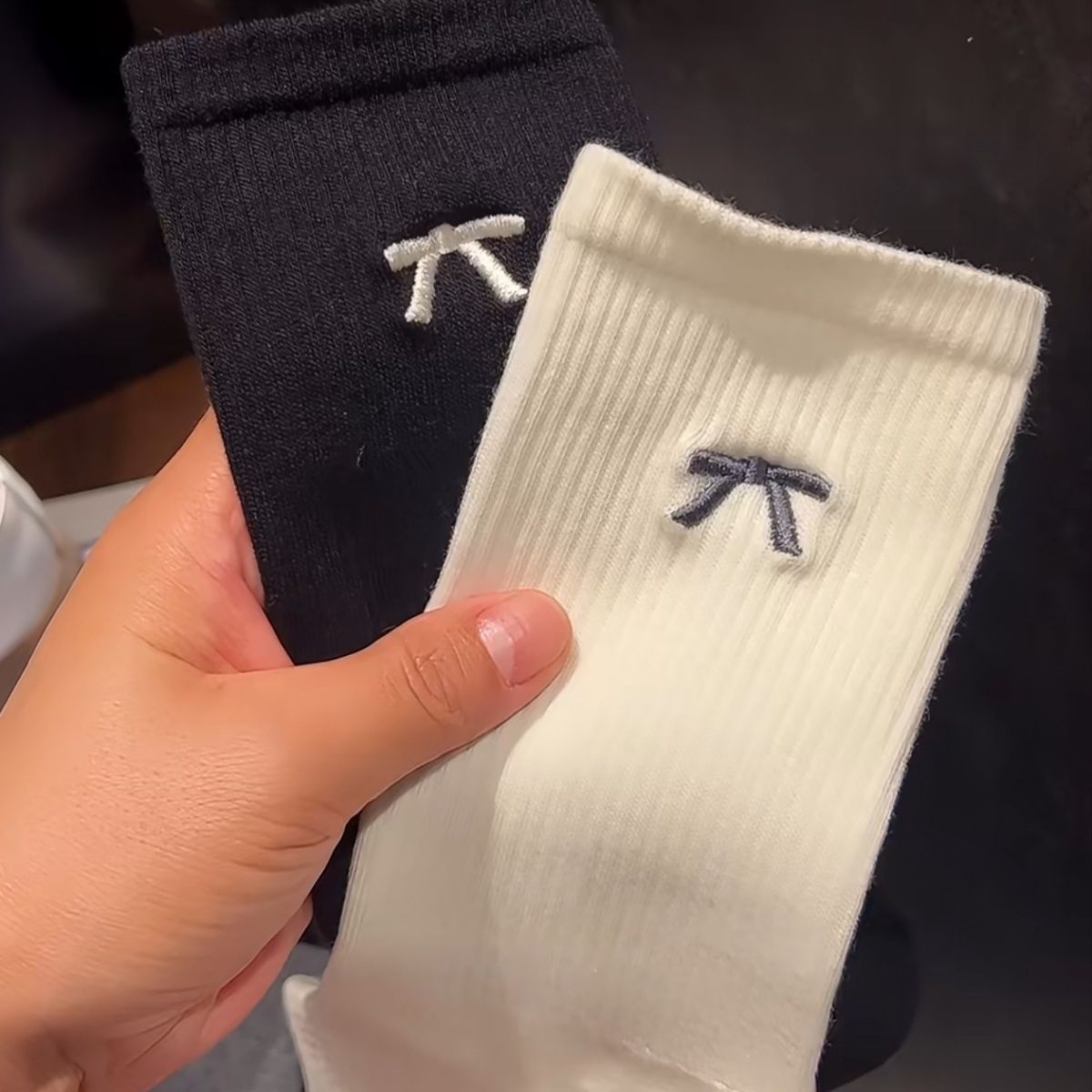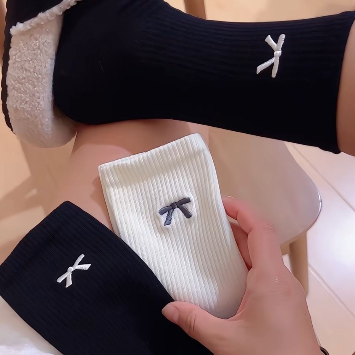 纯欲风刺绣袜子女秋冬新款蝴蝶结按摩底堆堆ins韩版甜美高腰女袜