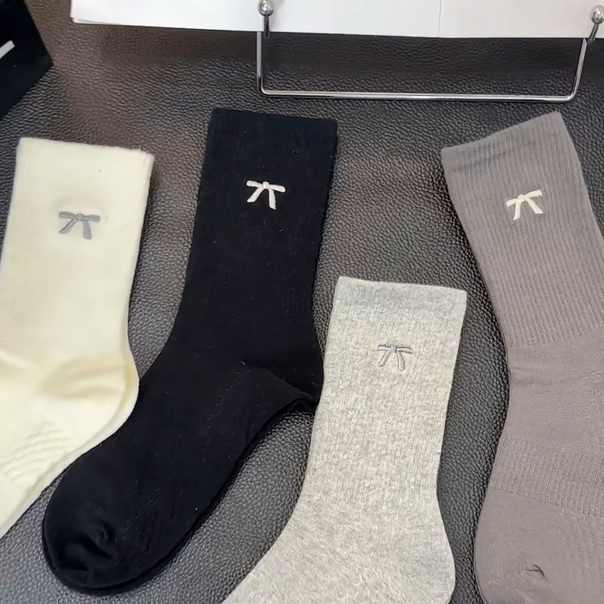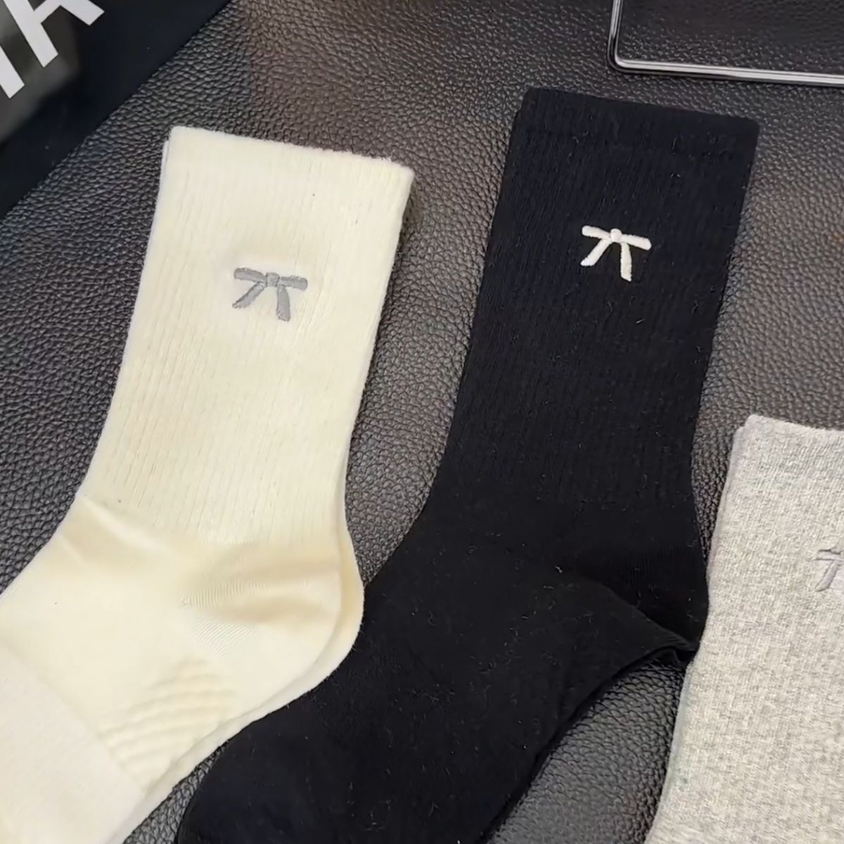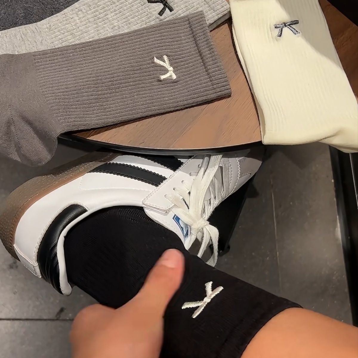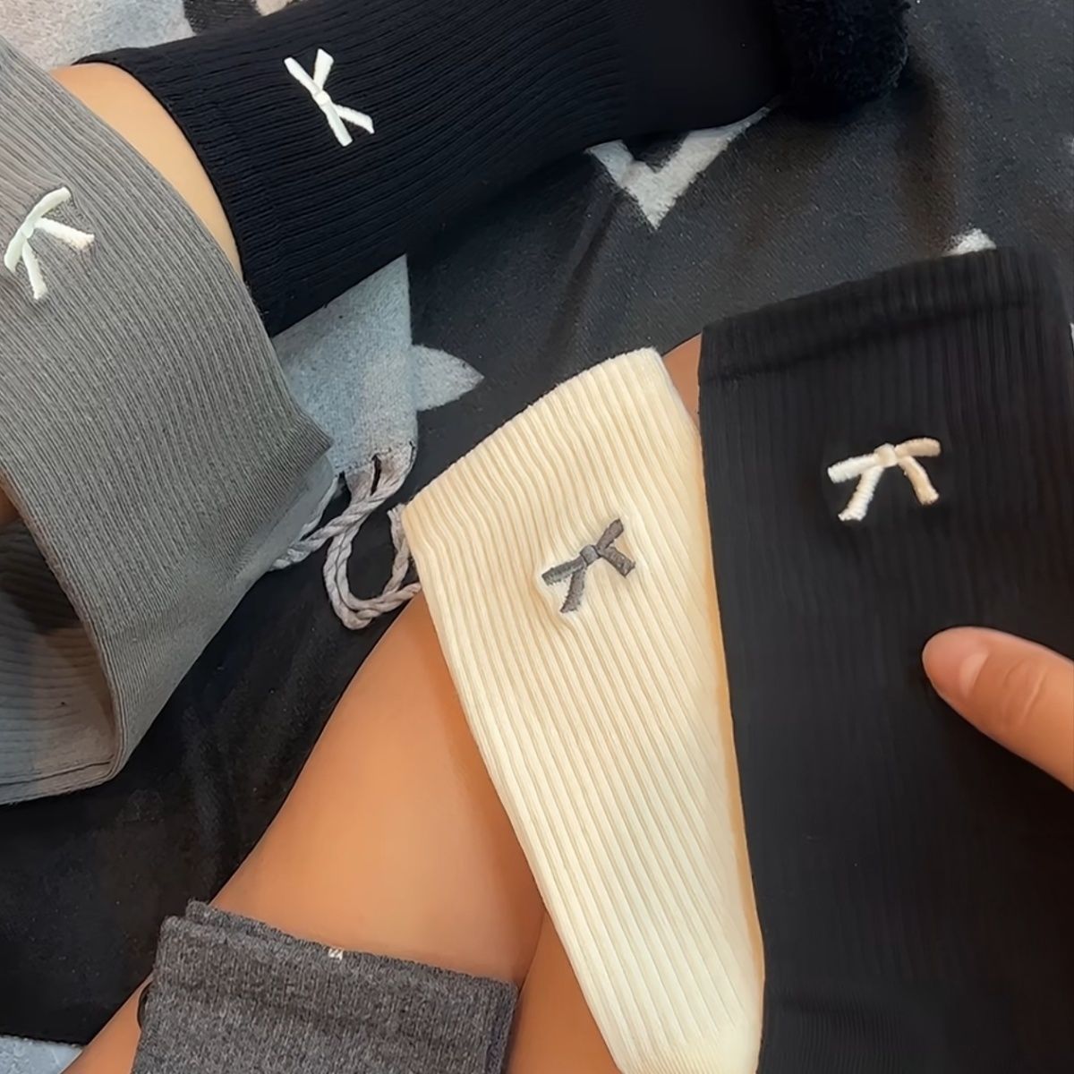 纯欲风刺绣袜子女秋冬新款蝴蝶结按摩底堆堆ins韩版甜美高腰女袜