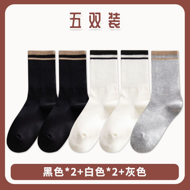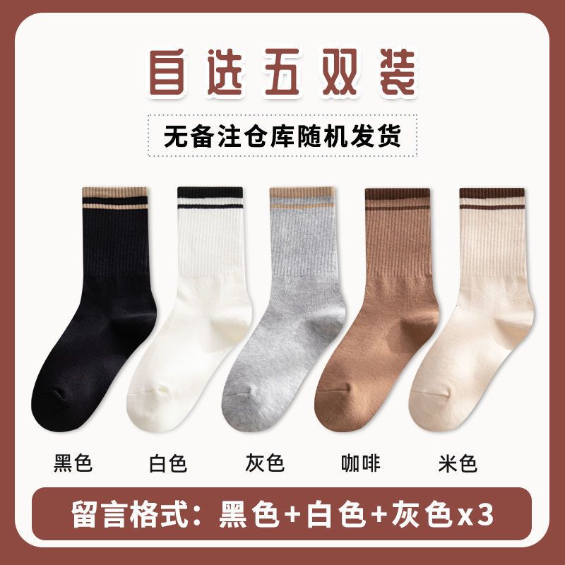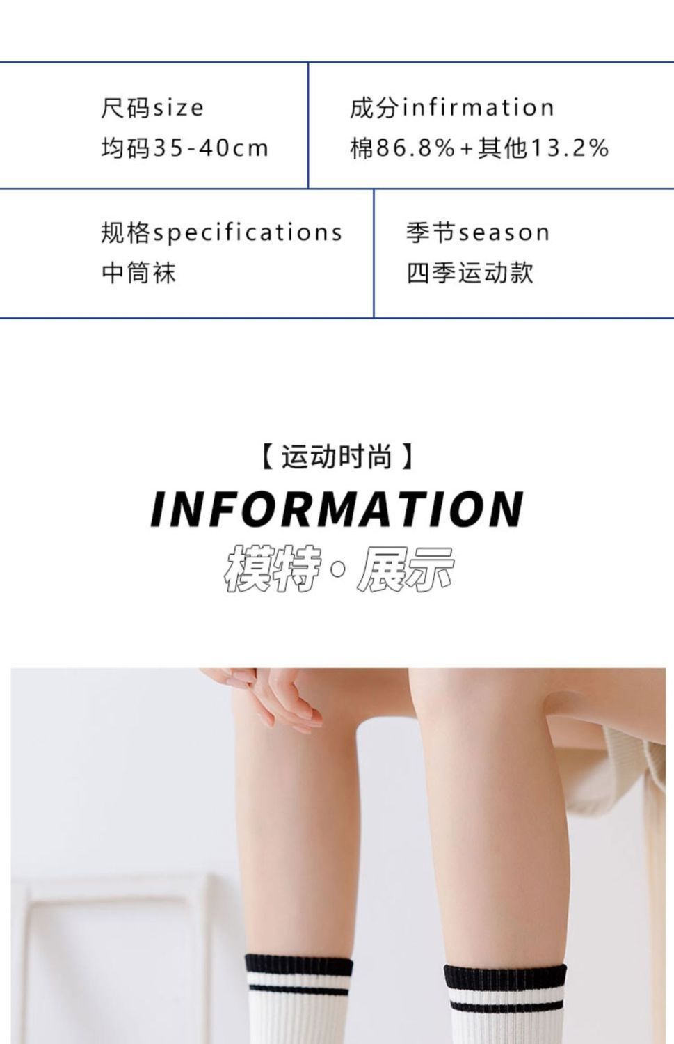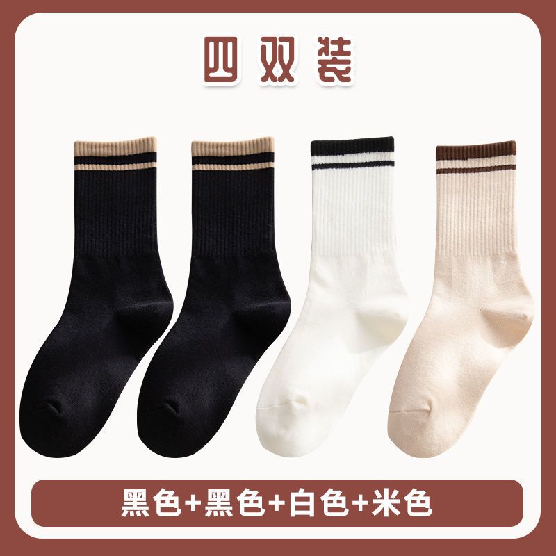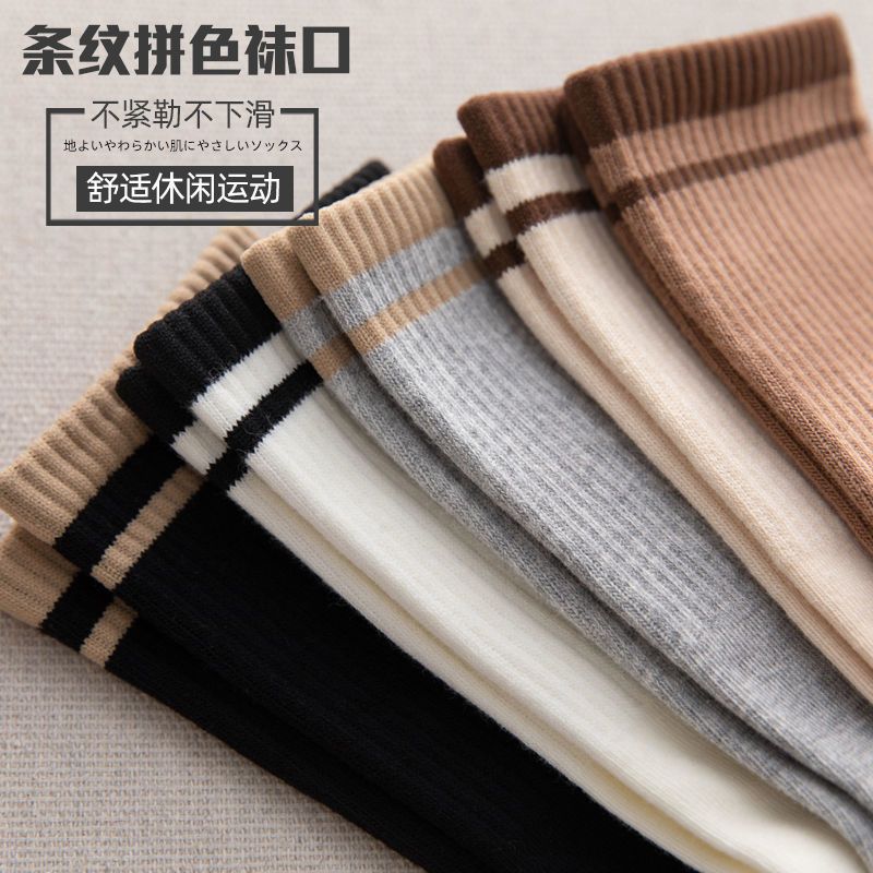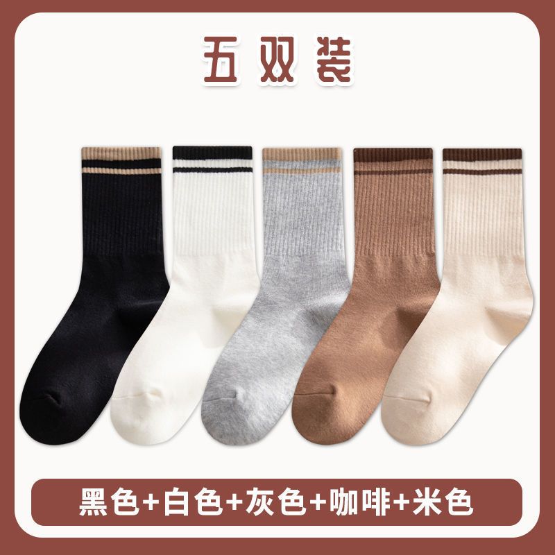 袜子女秋冬纯色棉袜透气防臭长筒学院风ins运动百搭黑色条纹潮袜