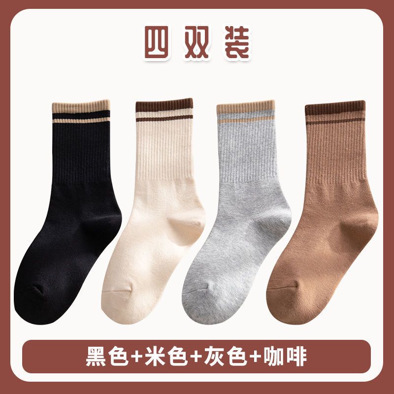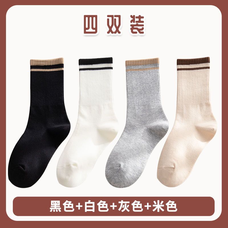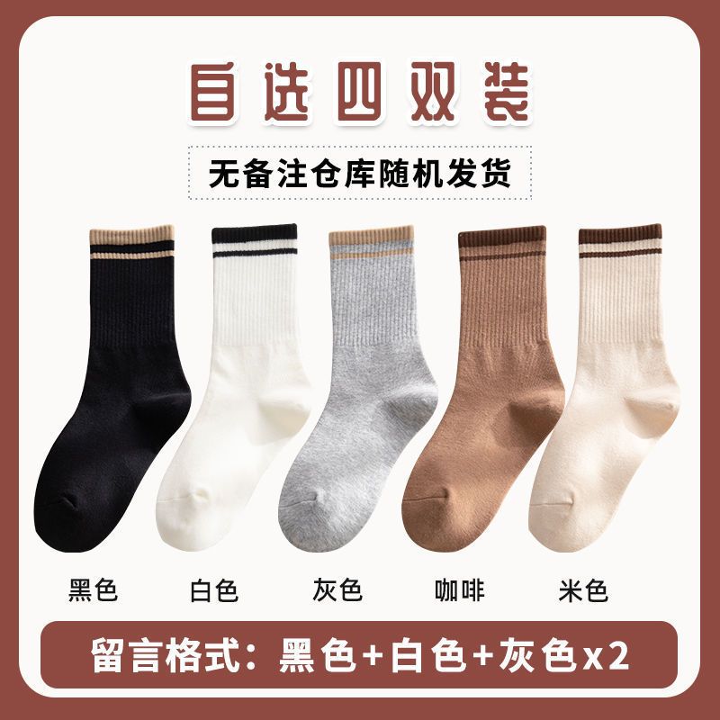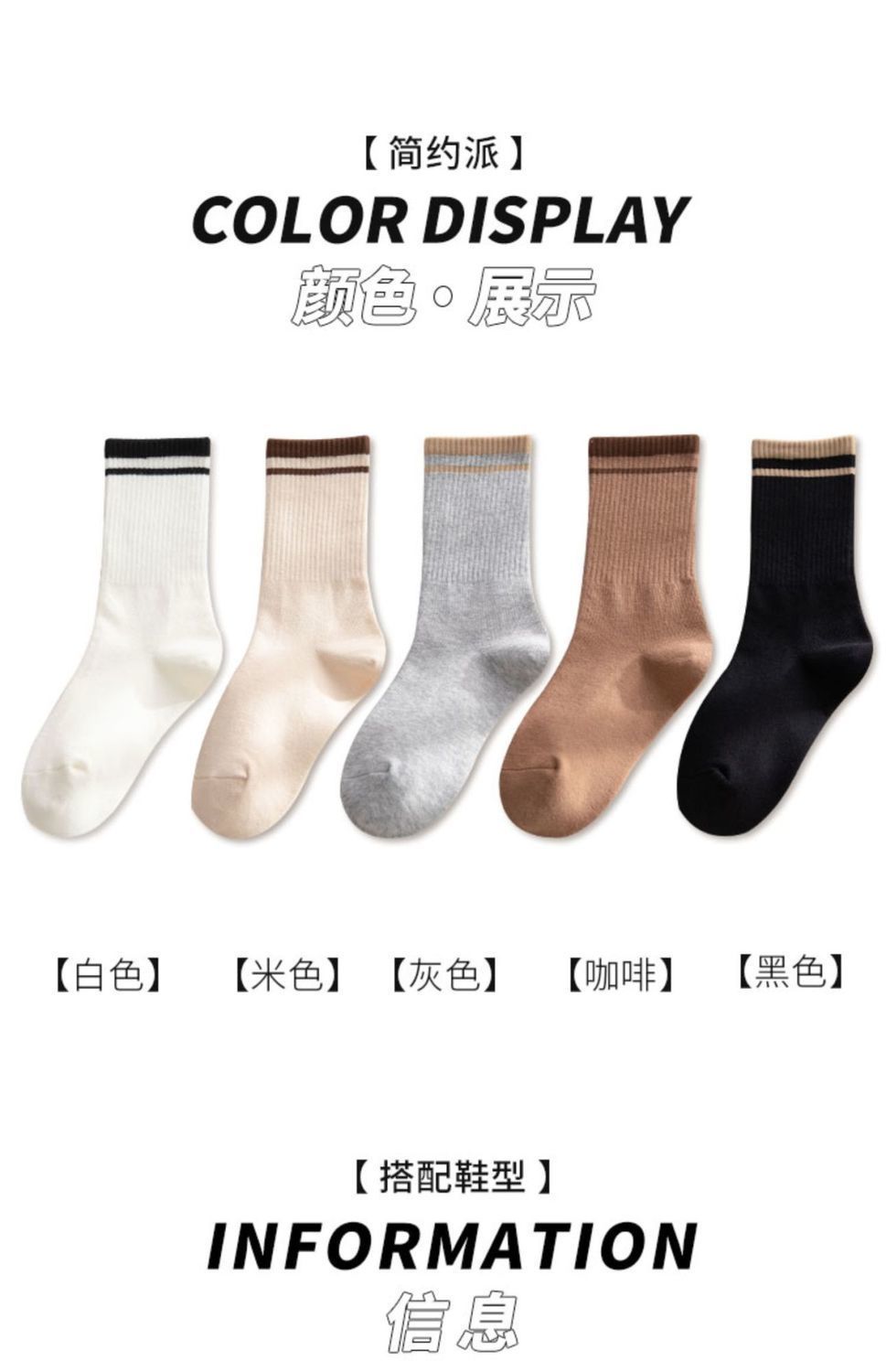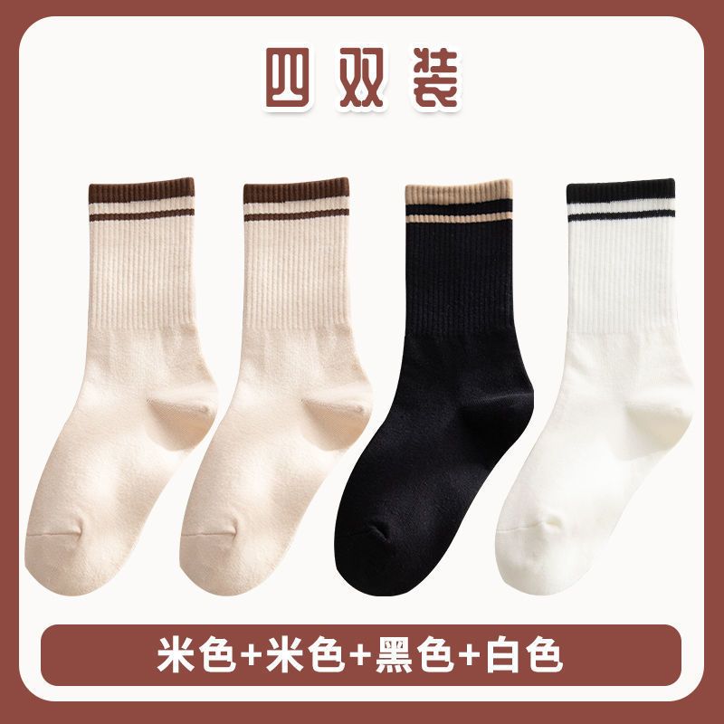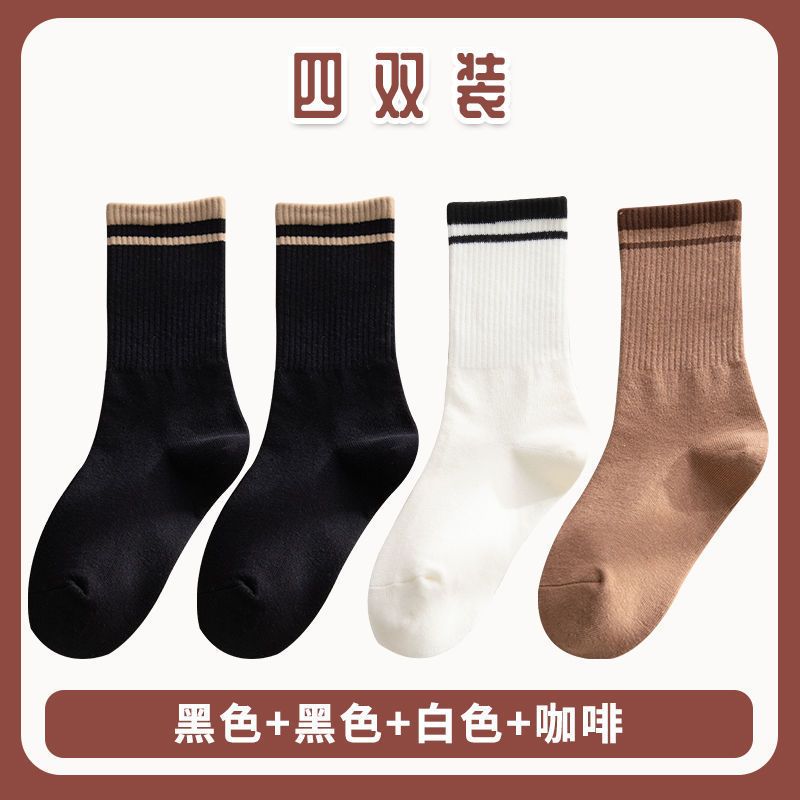 袜子女秋冬纯色棉袜透气防臭长筒学院风ins运动百搭黑色条纹潮袜