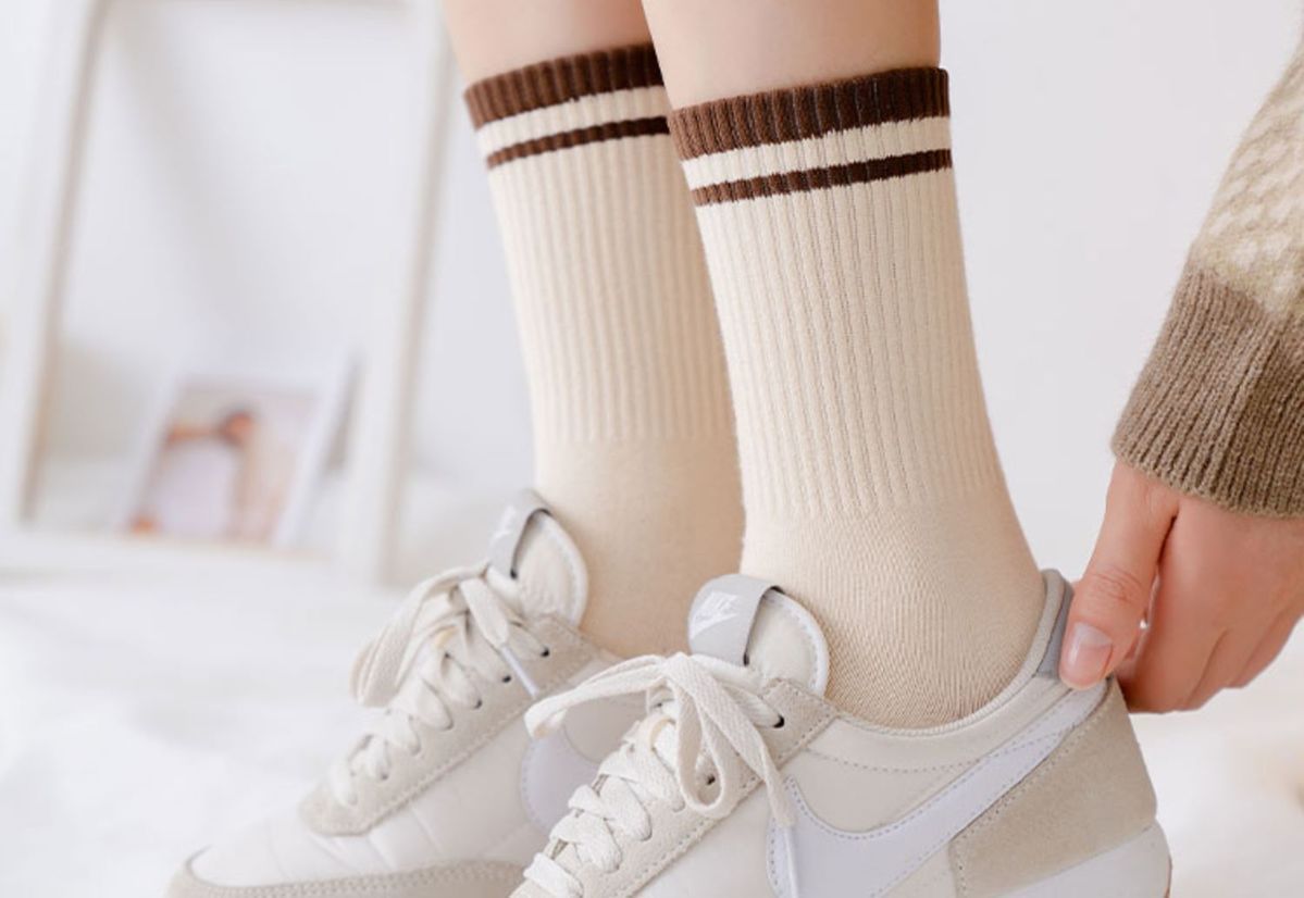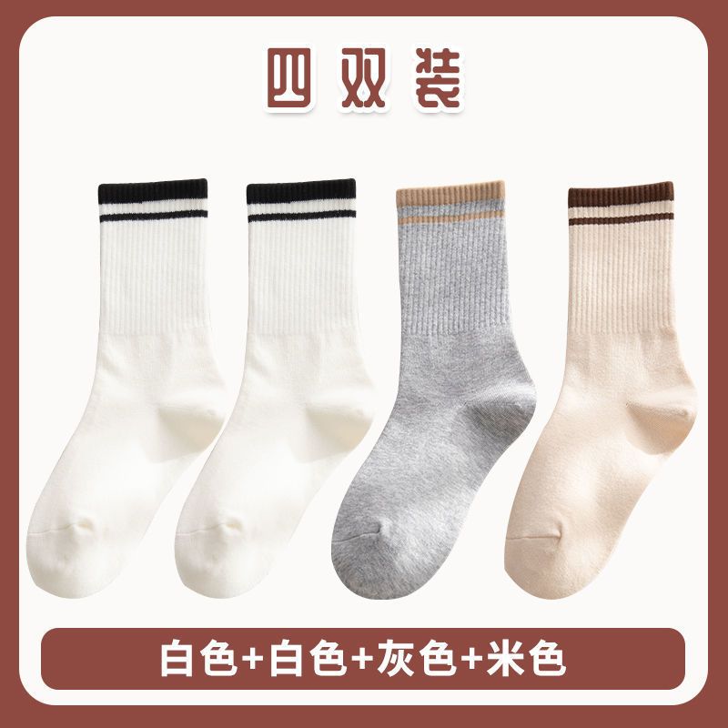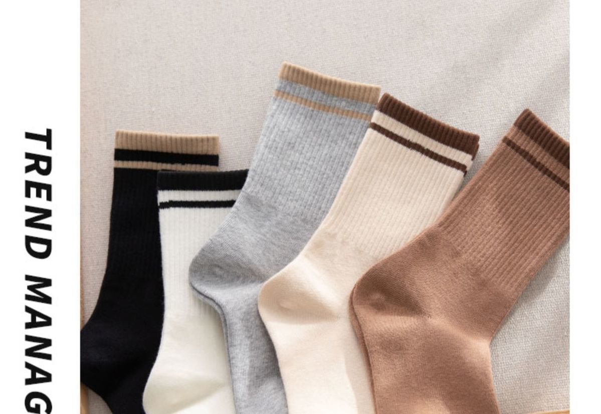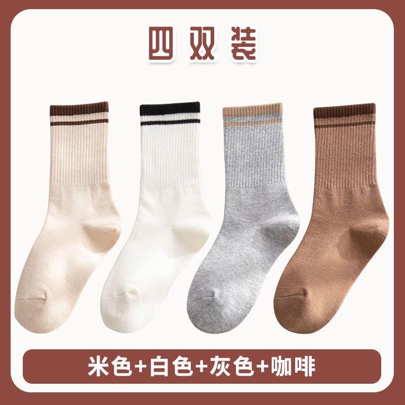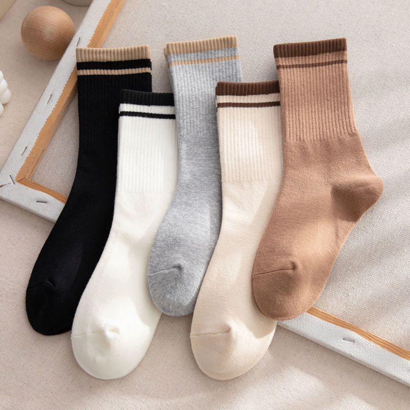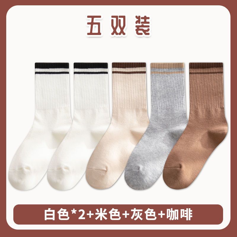 袜子女秋冬纯色棉袜透气防臭长筒学院风ins运动百搭黑色条纹潮袜