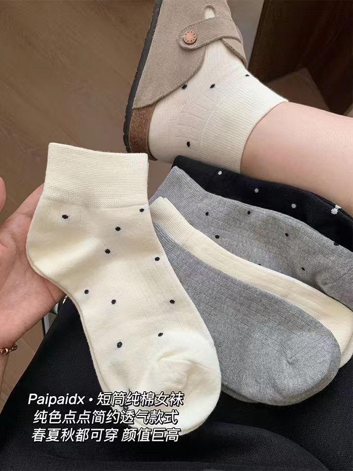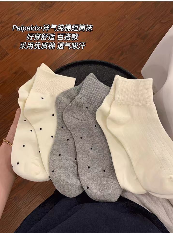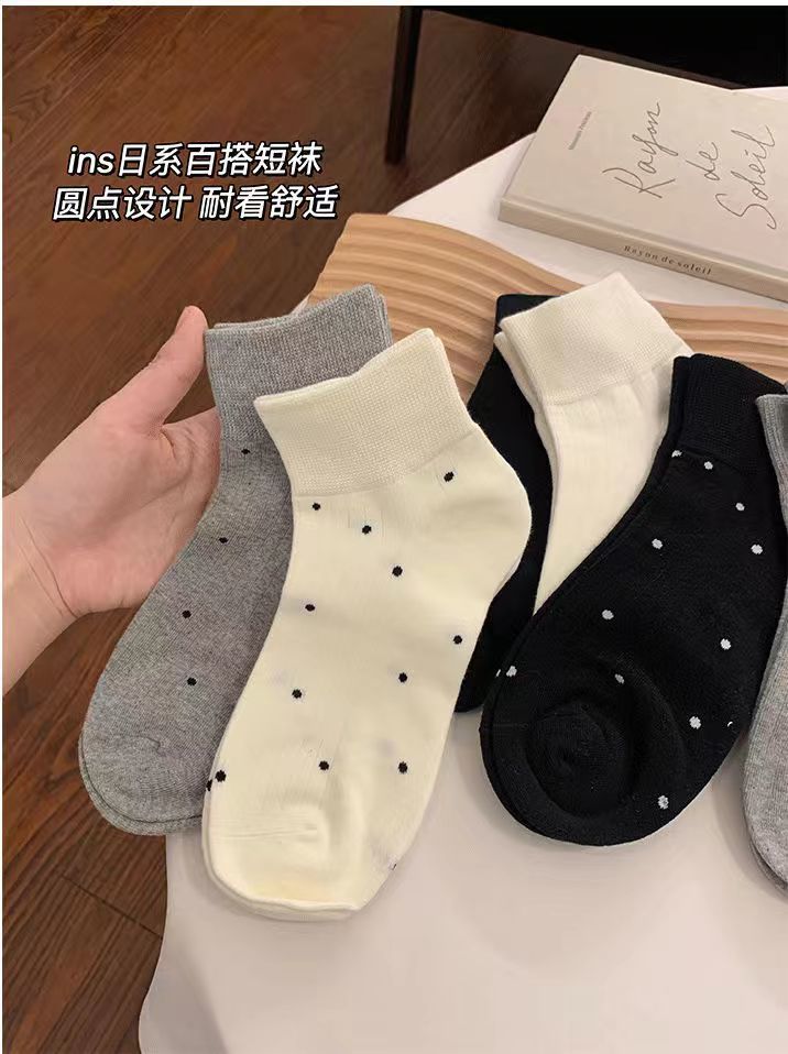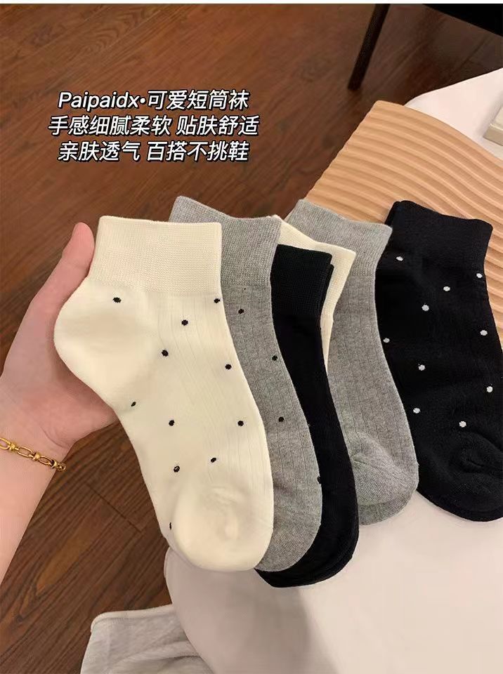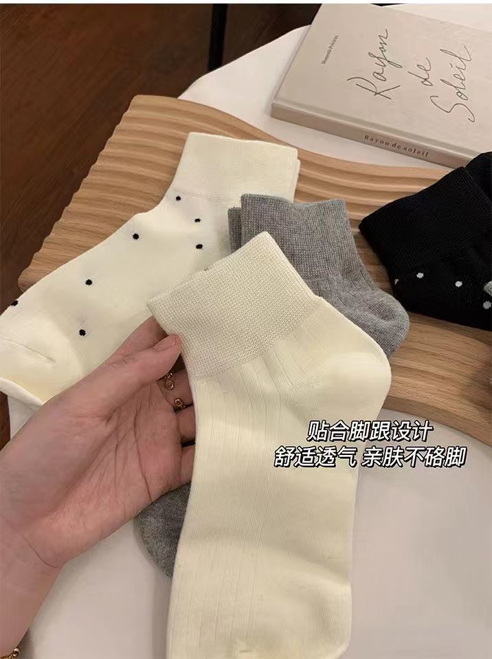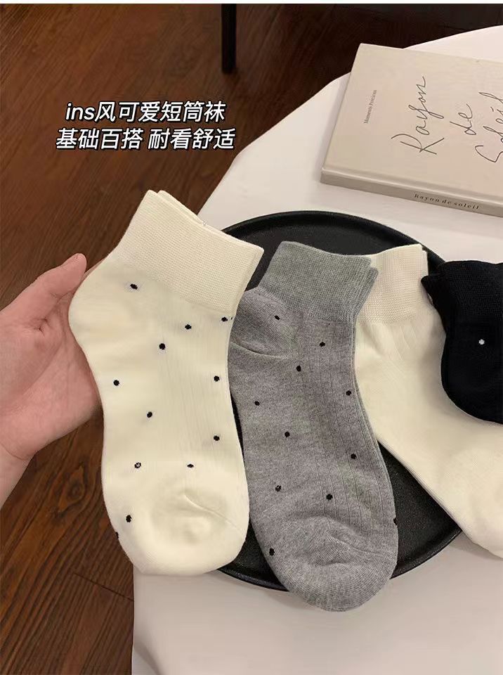 袜子女短袜夏季薄款可爱棉袜春秋款可爱波点白色中筒袜爆款ins潮