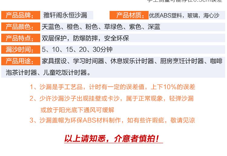 | 3 minutes(3分钟) | USD $1.84 | 99999 piece available |