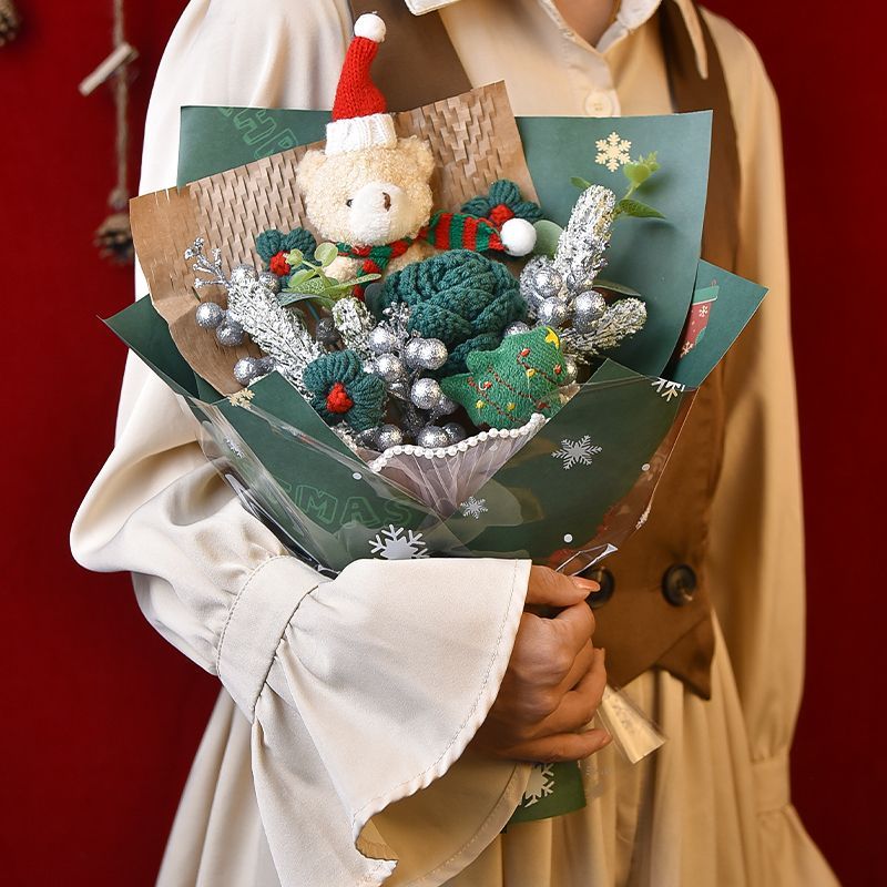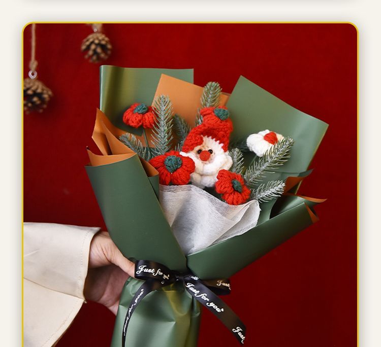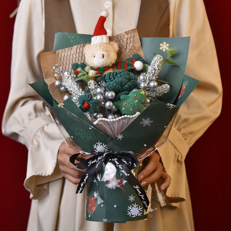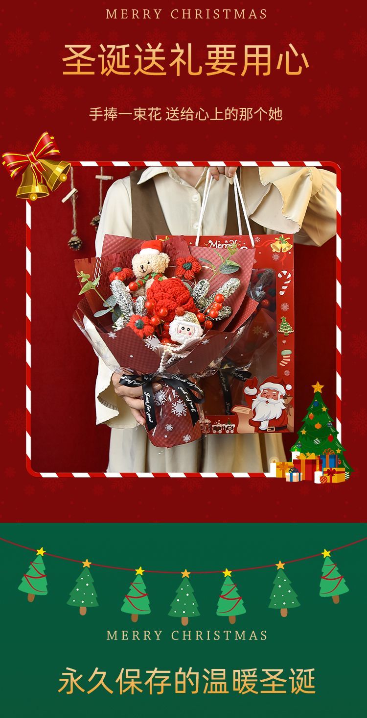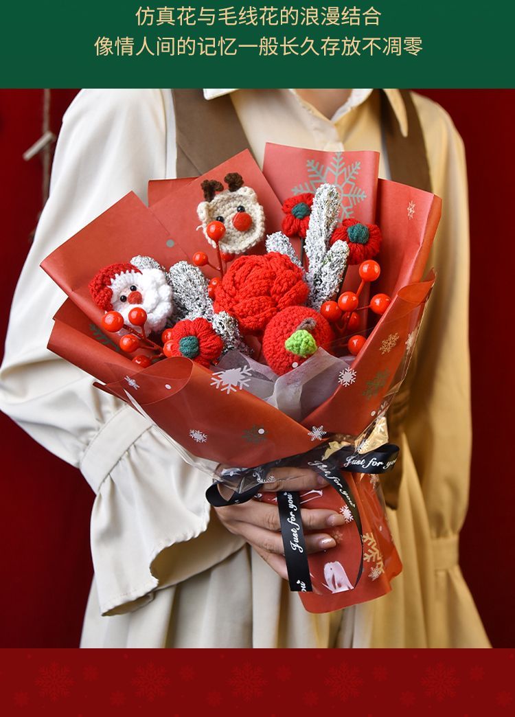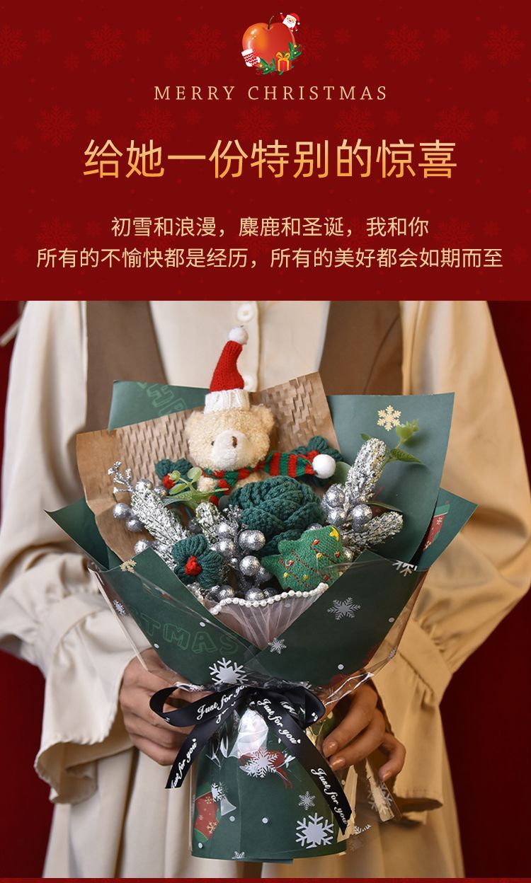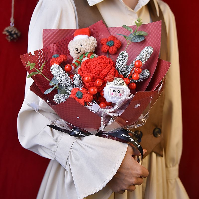 圣诞节平安夜小熊抱抱成品针织毛线花束闺蜜女友手工编织生日礼物