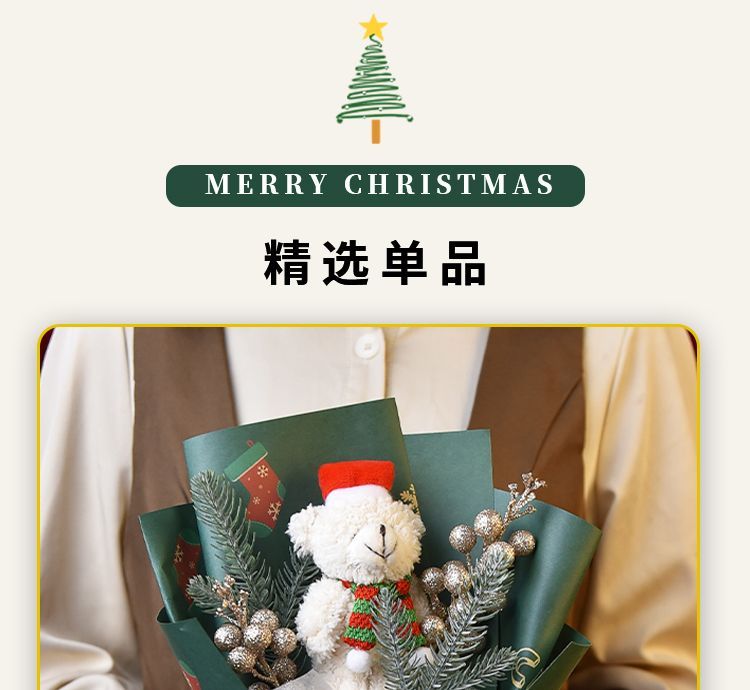 | christmas medium bouquet plush christmas bear-white(圣诞中号花束毛绒圣诞小熊-白色) | USD $7.1 | 99999 piece available |