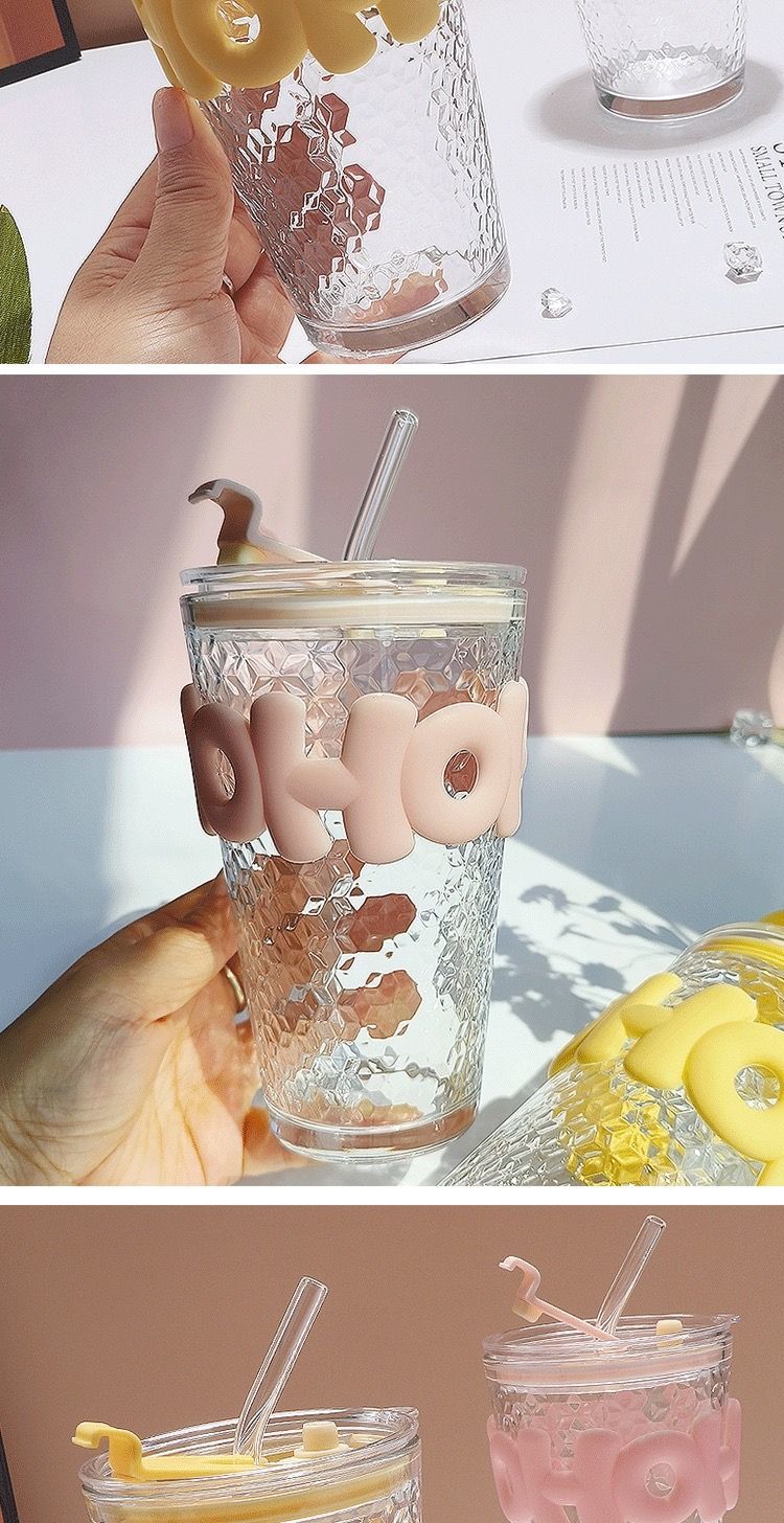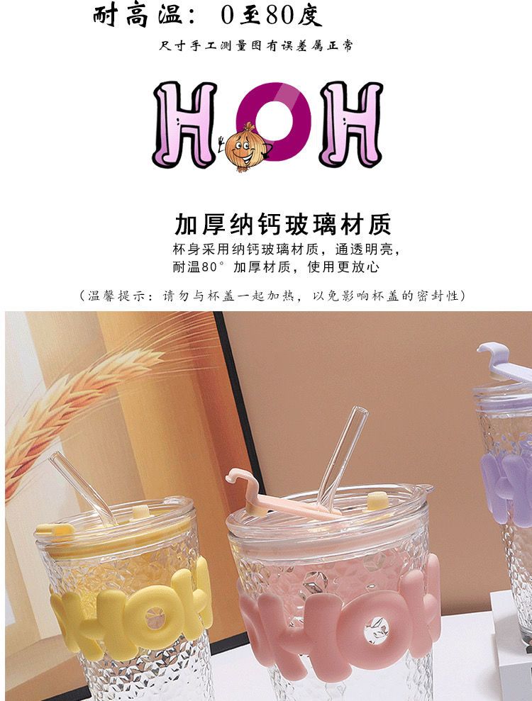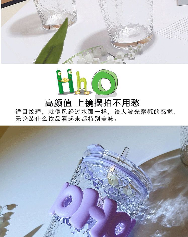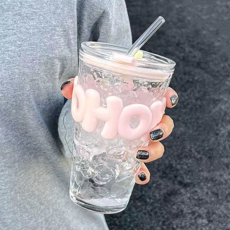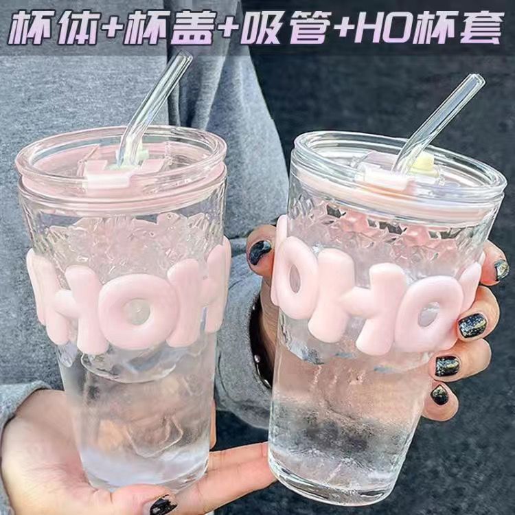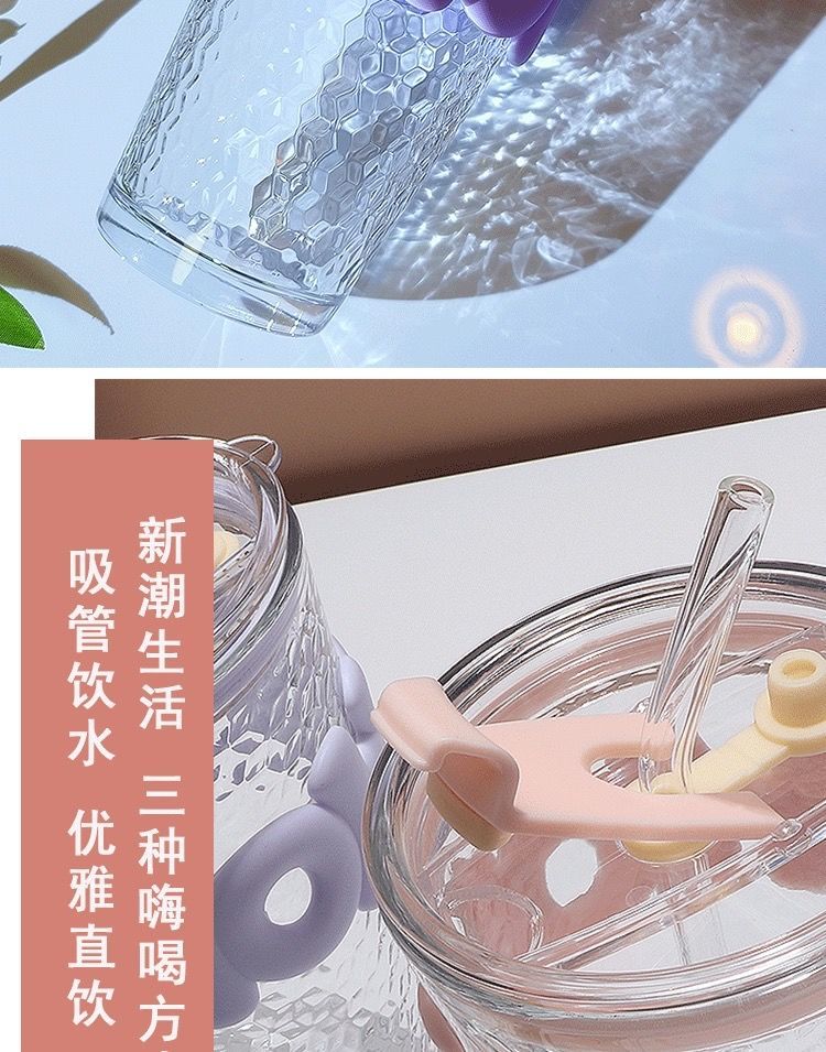 韩系玻璃杯子ins高颜值大容量学生办公室家用咖啡果汁透明吸管杯