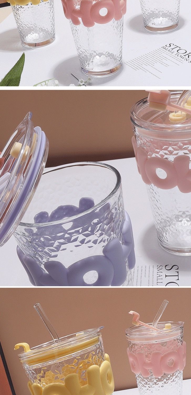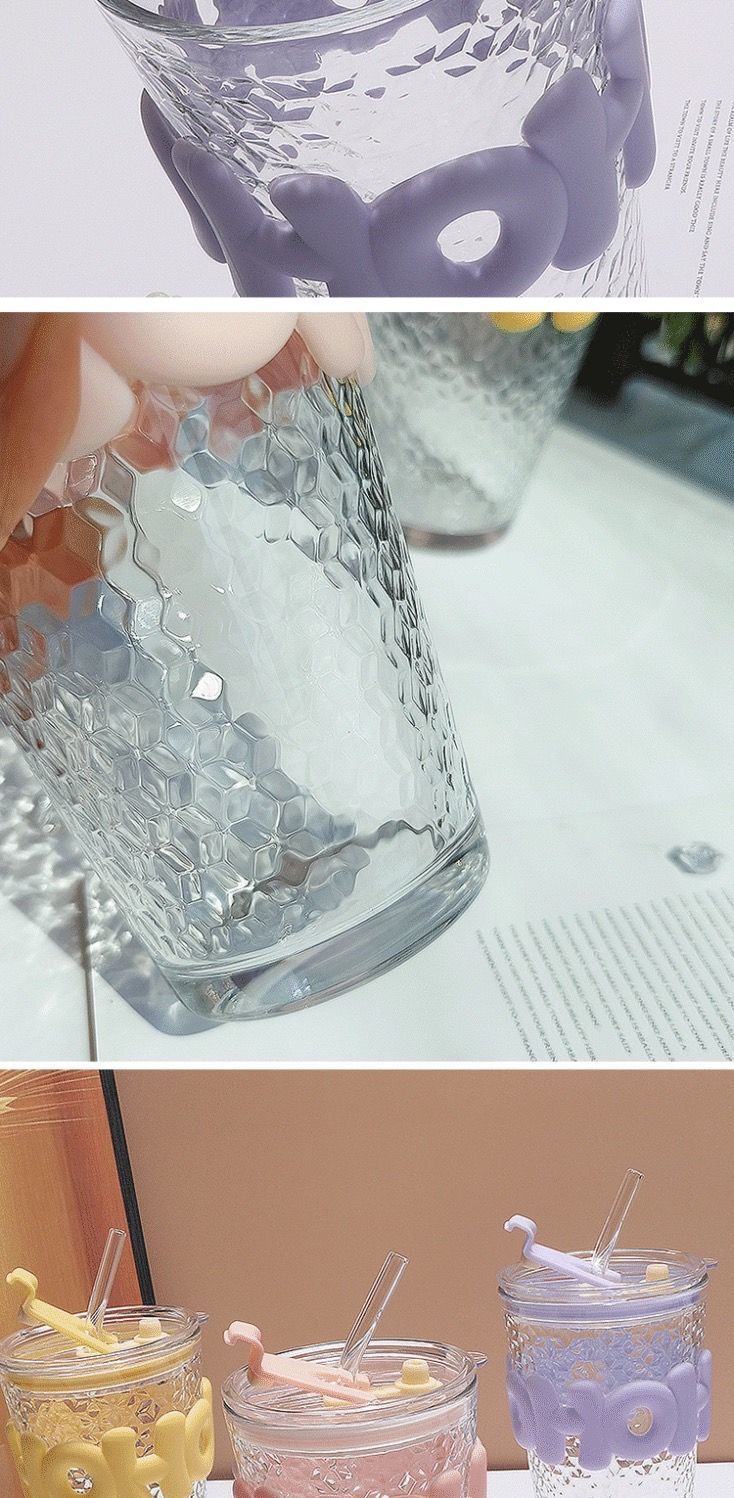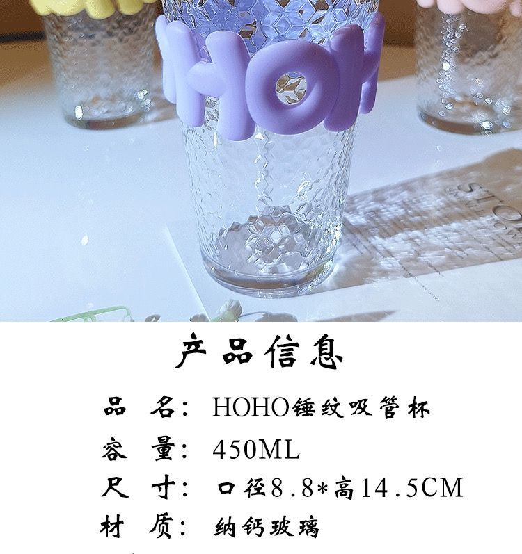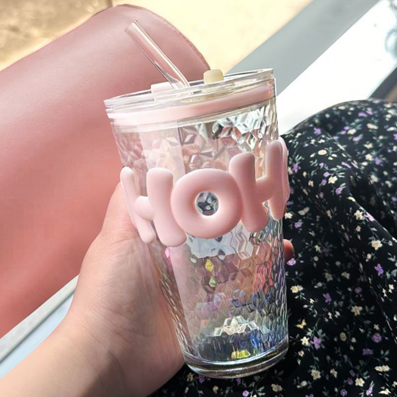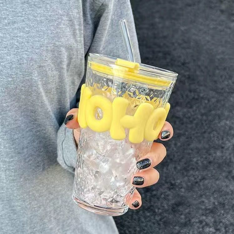 韩系玻璃杯子ins高颜值大容量学生办公室家用咖啡果汁透明吸管杯