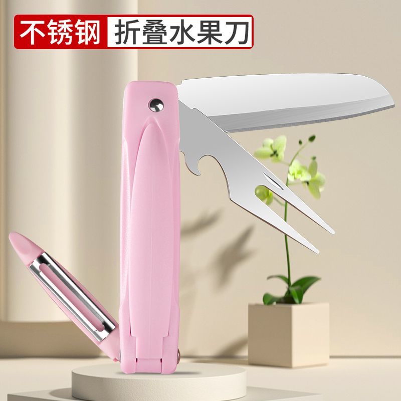 折叠水果刀多功能不锈钢切水果切菜厨房家用瓜果刀宿舍锋利削皮刀