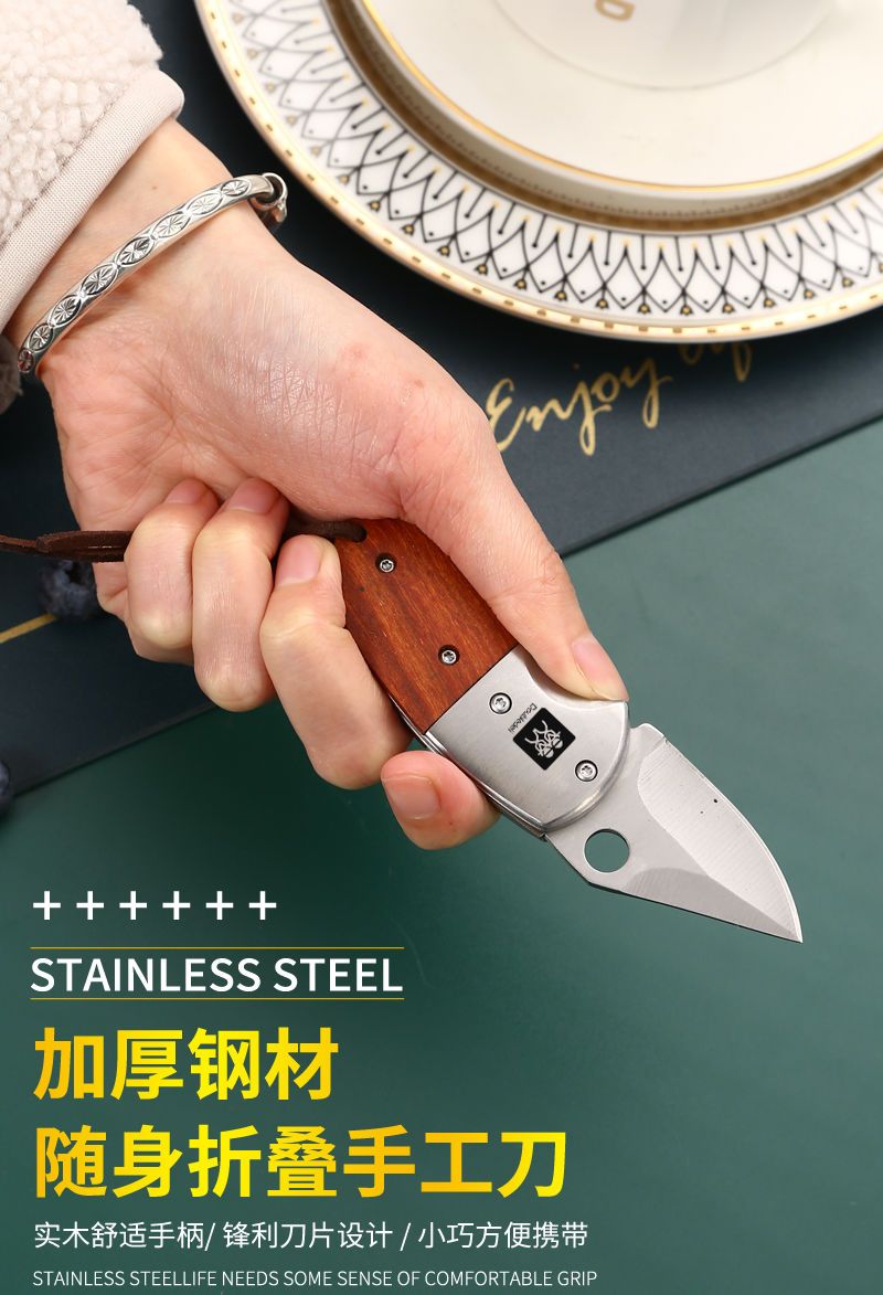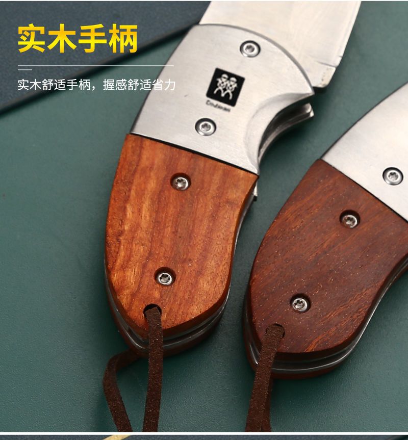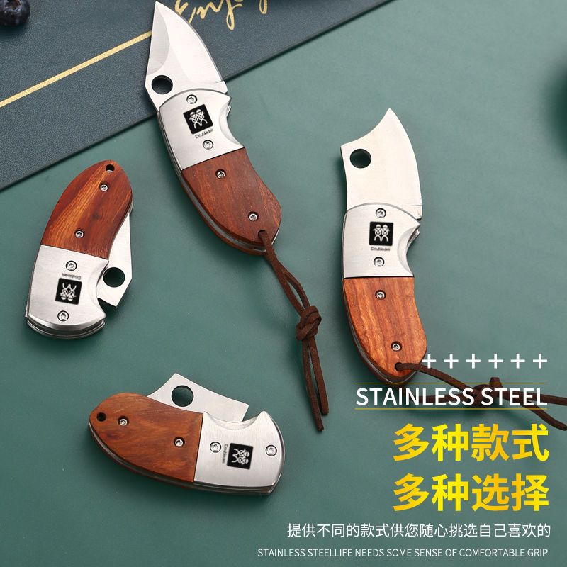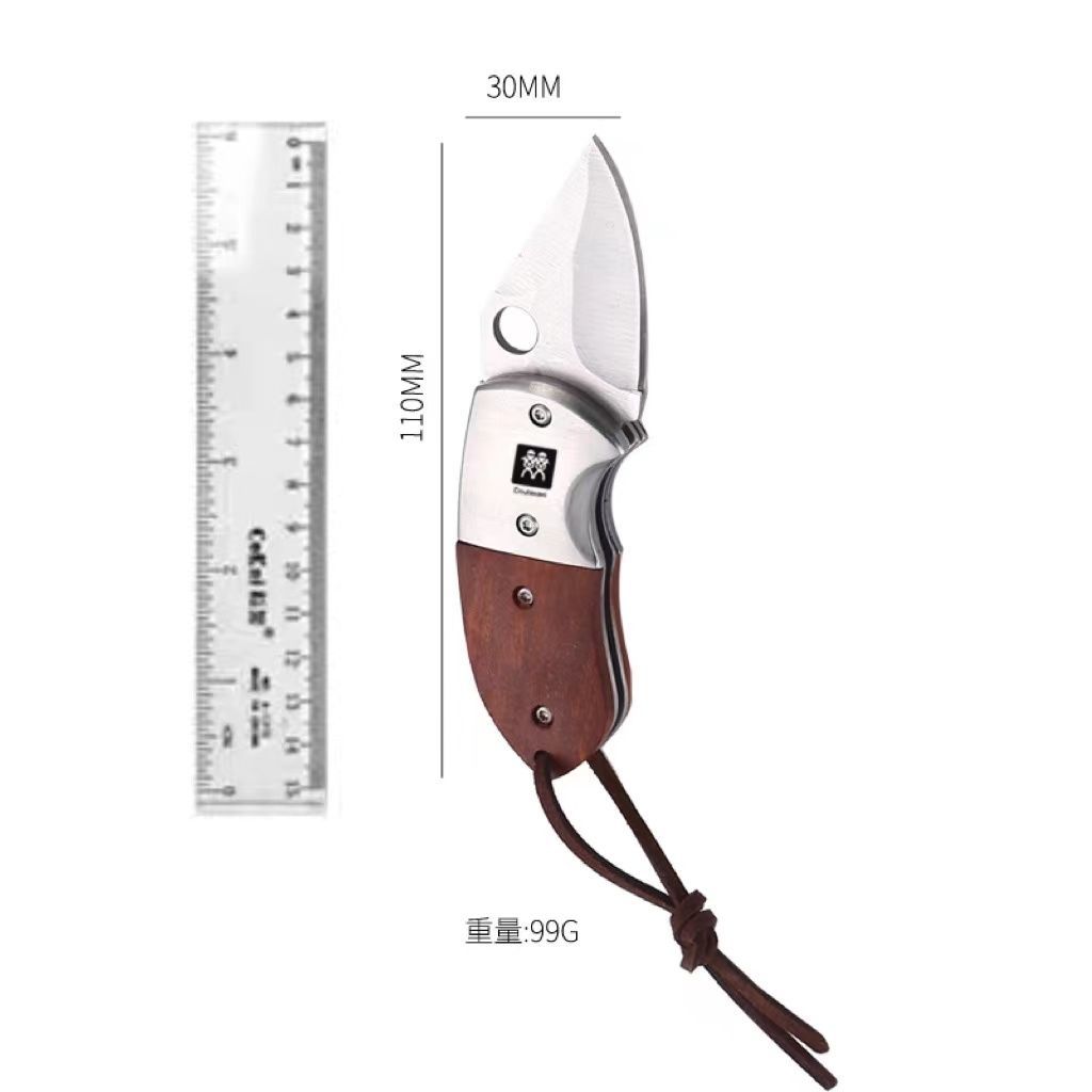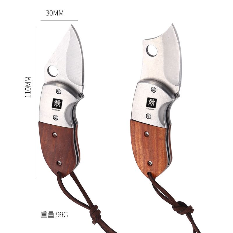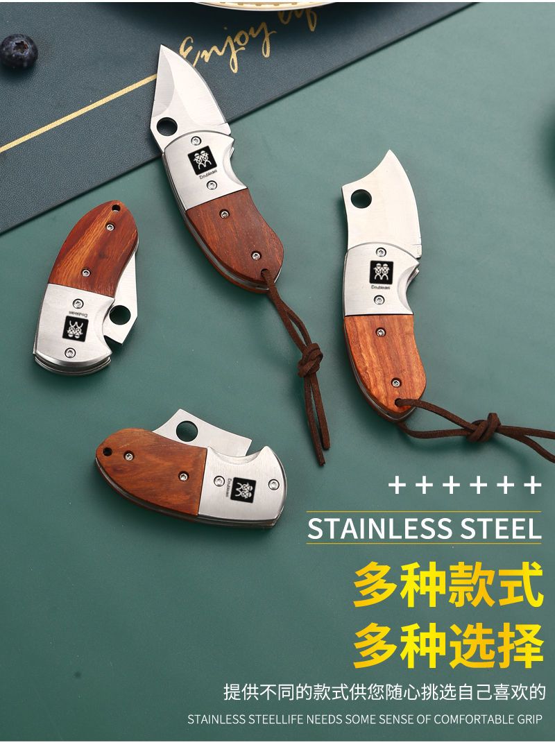 德国DOUBLEDELI户外折叠刀迷你小刀子高硬度随身防身木柄刀水果刀