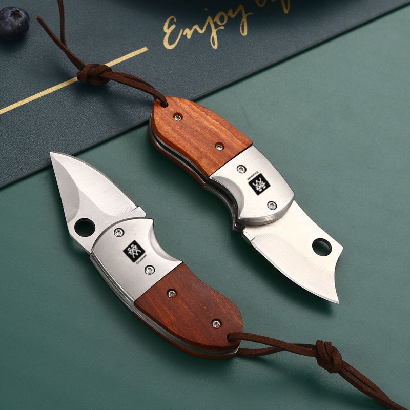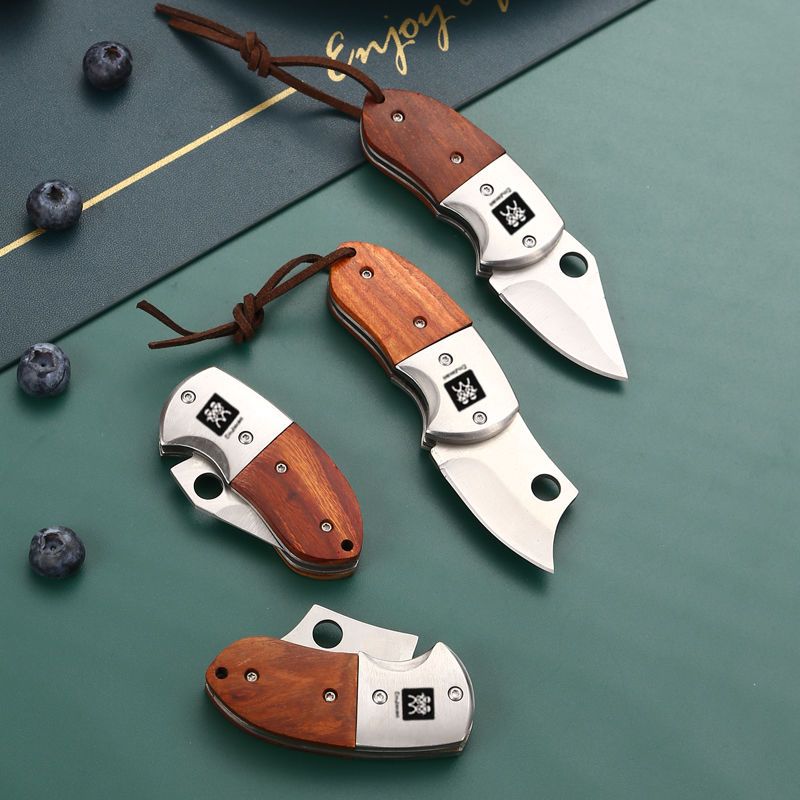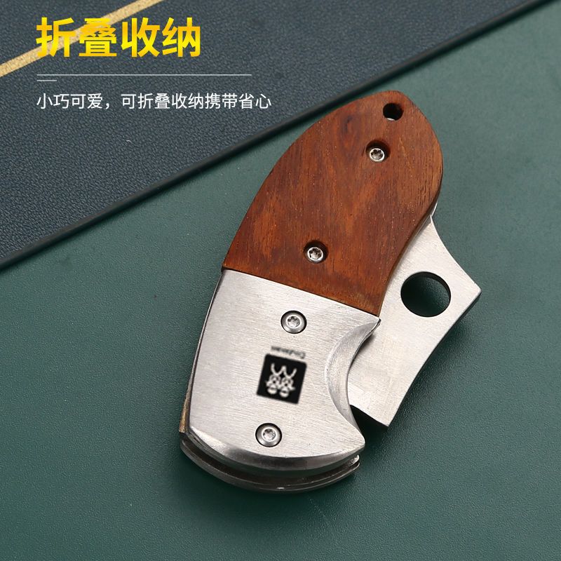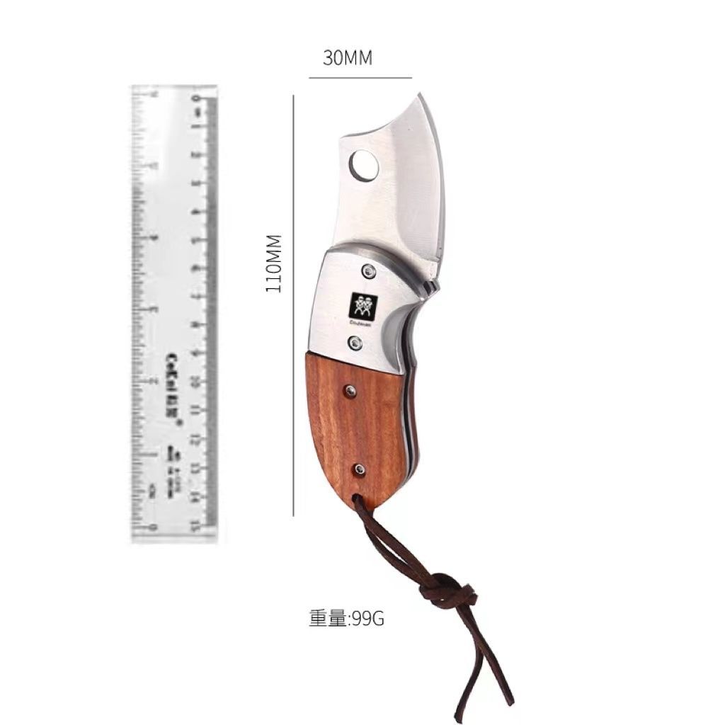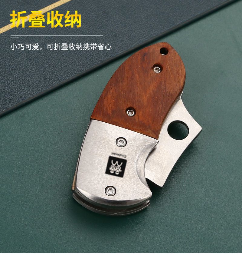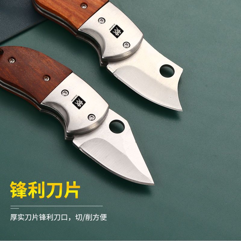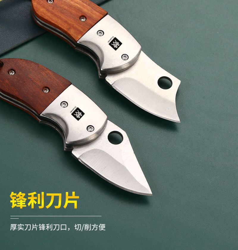 德国DOUBLEDELI户外折叠刀迷你小刀子高硬度随身防身木柄刀水果刀