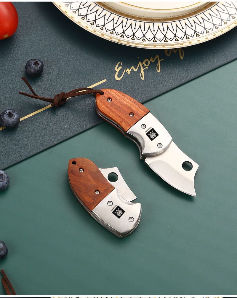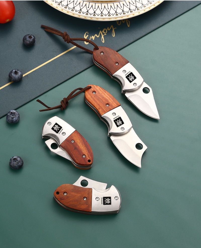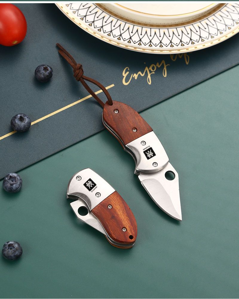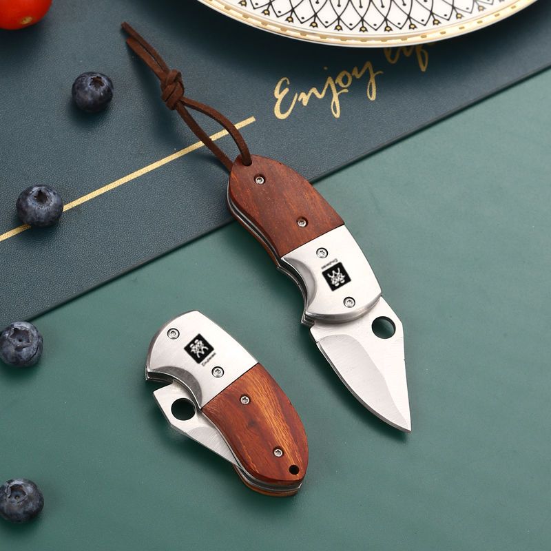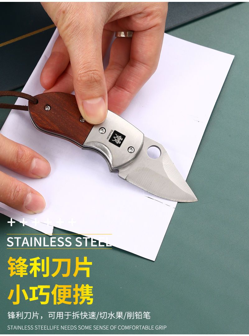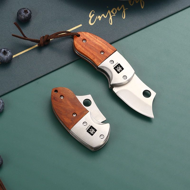 德国DOUBLEDELI户外折叠刀迷你小刀子高硬度随身防身木柄刀水果刀
