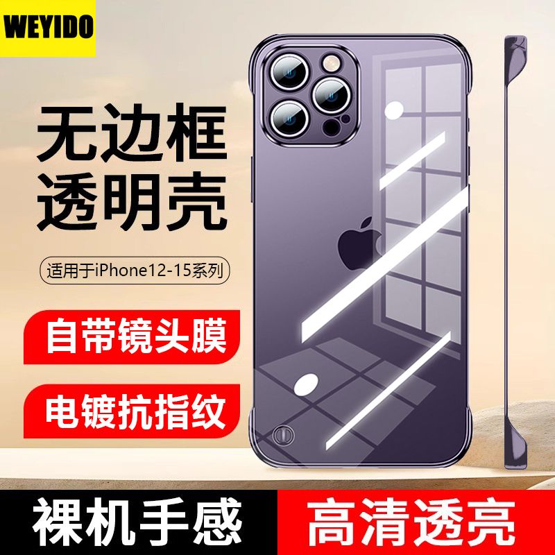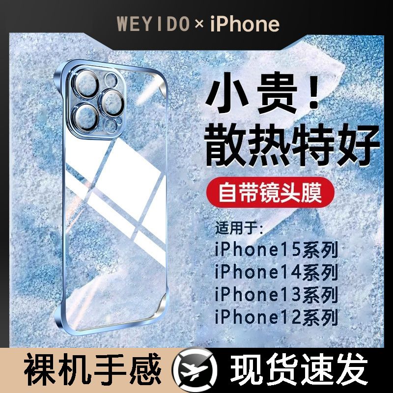 苹果15手机壳iPhone14无边框13ProMax透明12半包11散热PLUS新款