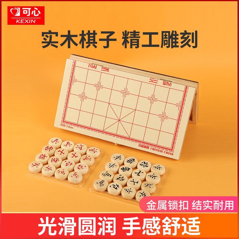 中国象棋实木大号高档成人学生儿童橡棋套装带便携式木质折叠棋盘