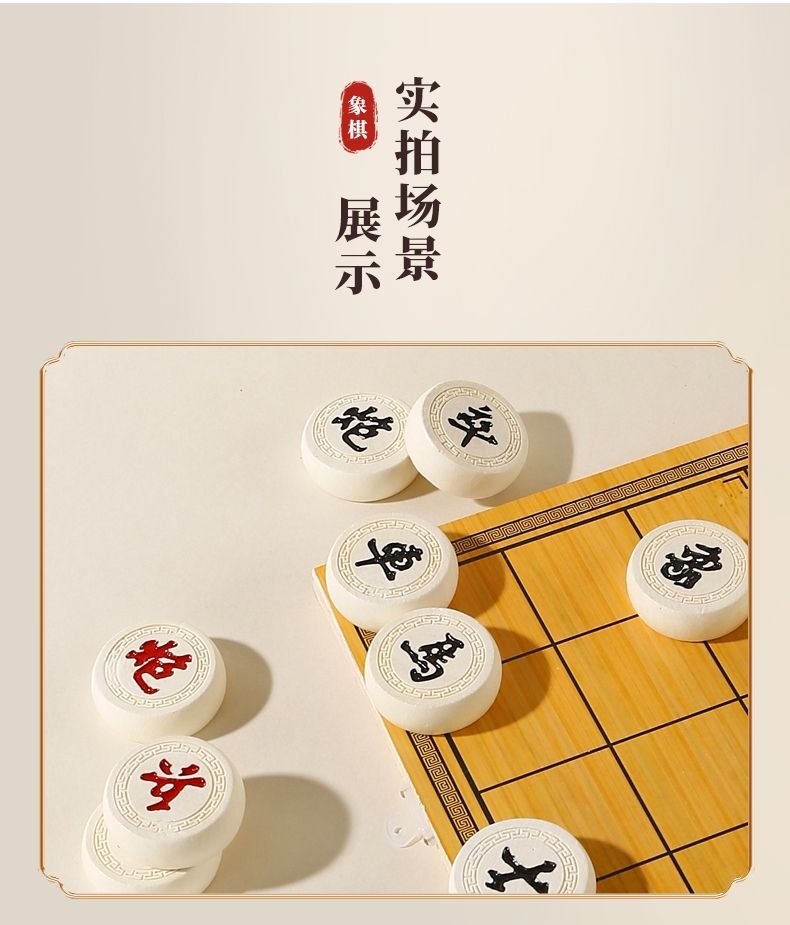 | 27 solid wood chess + folding storage chessboard + tutorial book(27实木象棋+折叠收纳棋盘+教程书) | USD $2.21 | 99999 piece available |