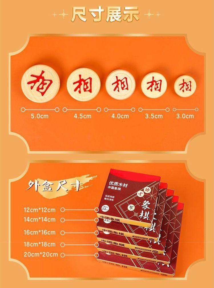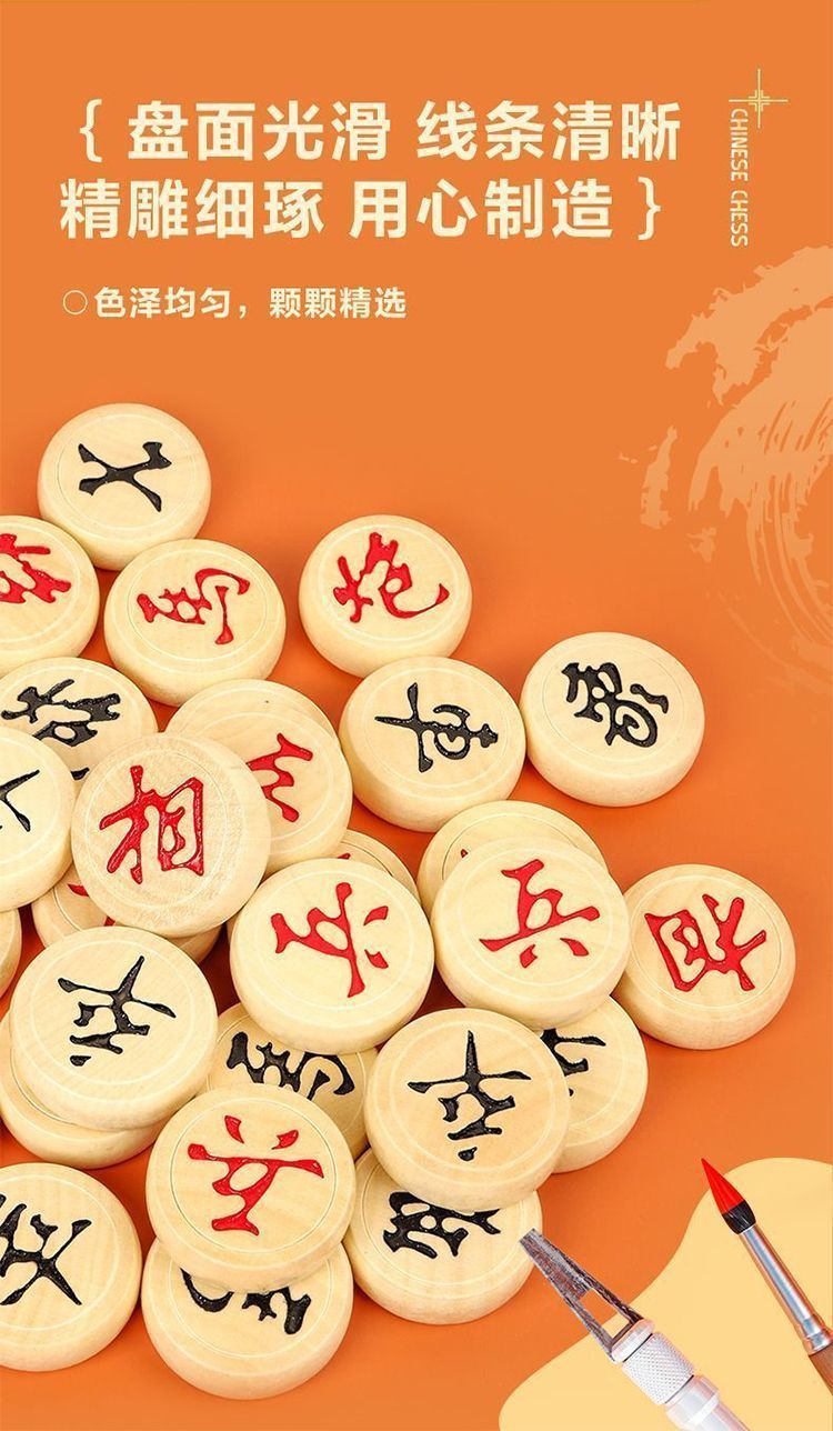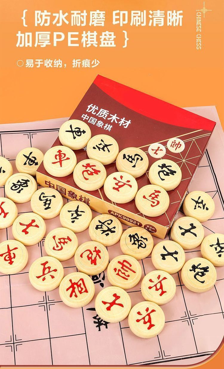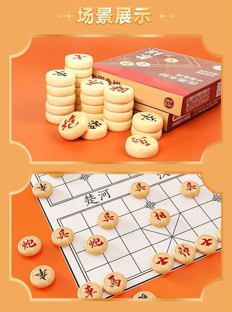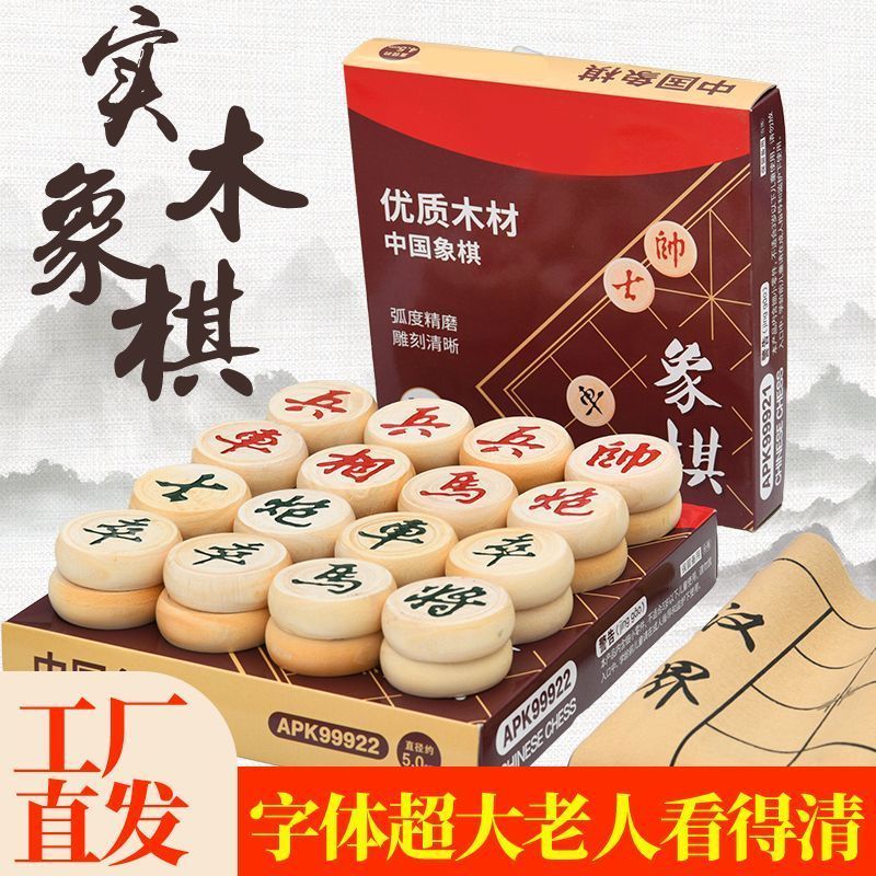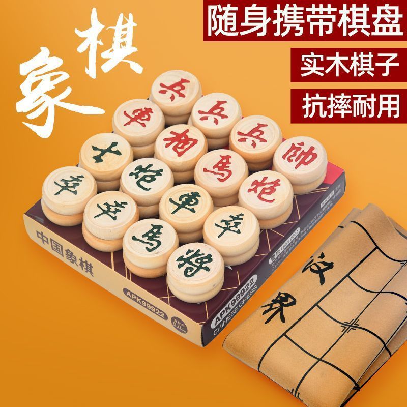 木质象棋盒装中小学生儿童便携式入门大号益智带棋盘棋子套装