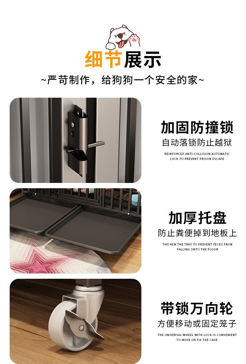 狗笼子宠物泰迪家用室内小型犬中大型犬带厕所分离猫笼兔笼狗别墅