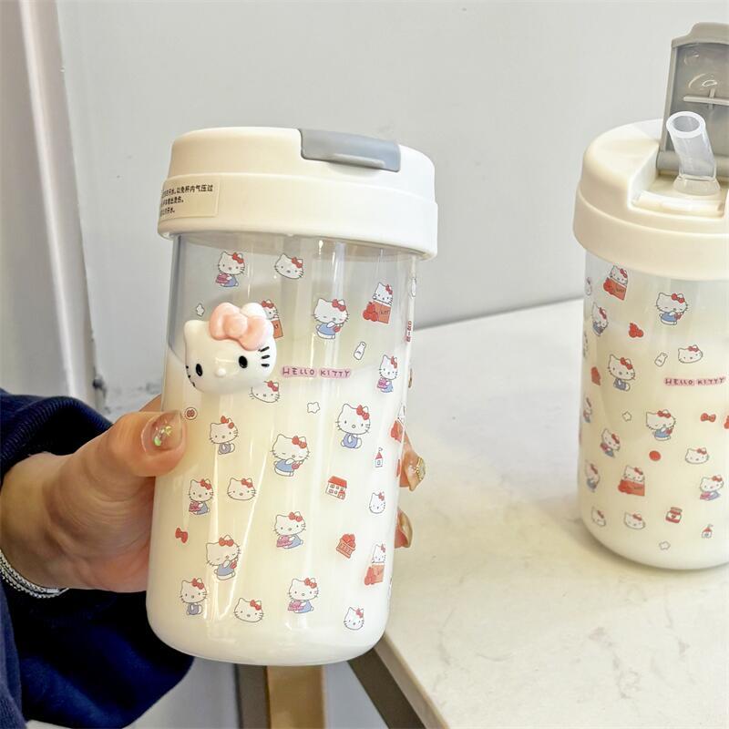 hellokitty大容量吸管杯女生可爱简约学生塑料杯耐摔耐高温杯子