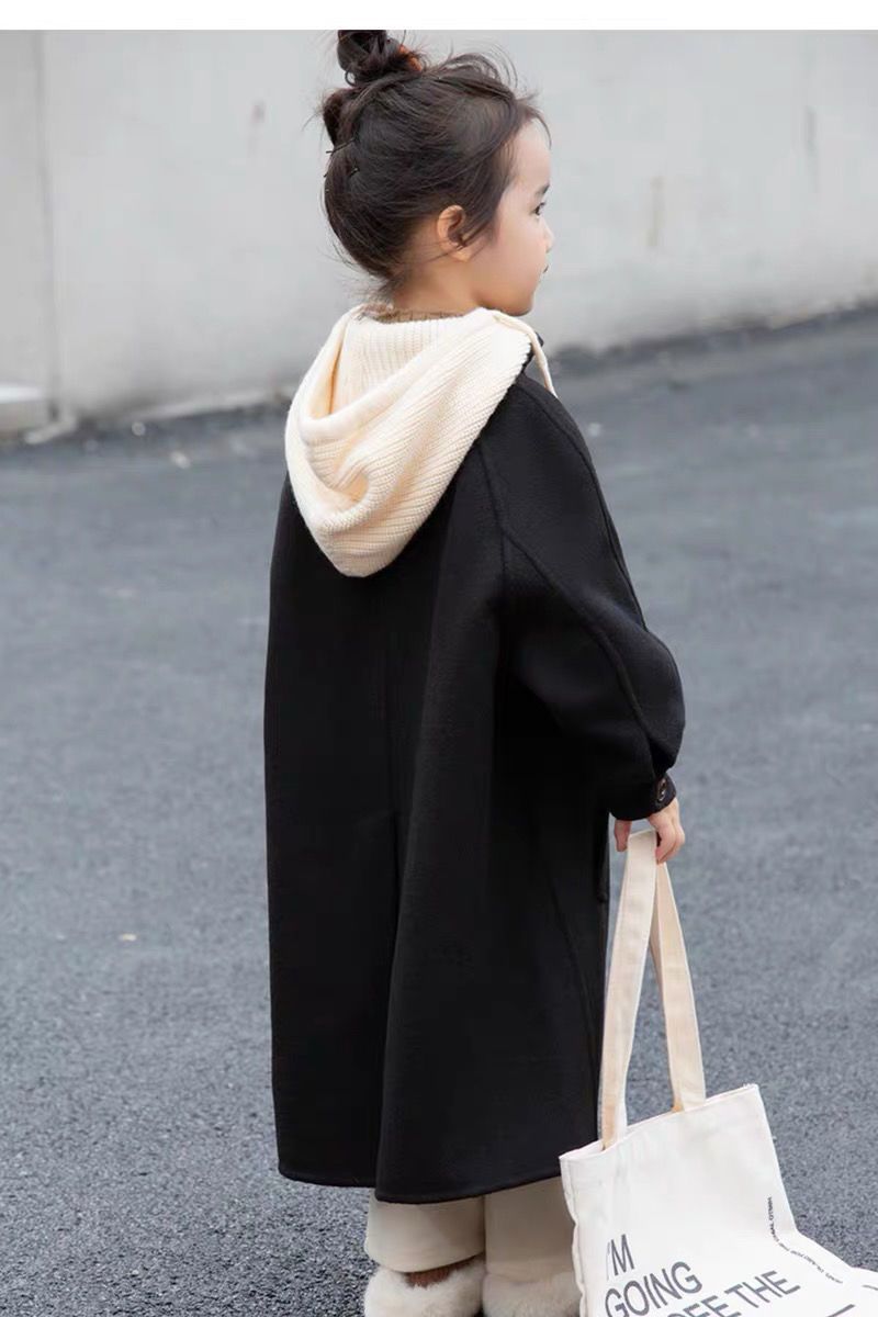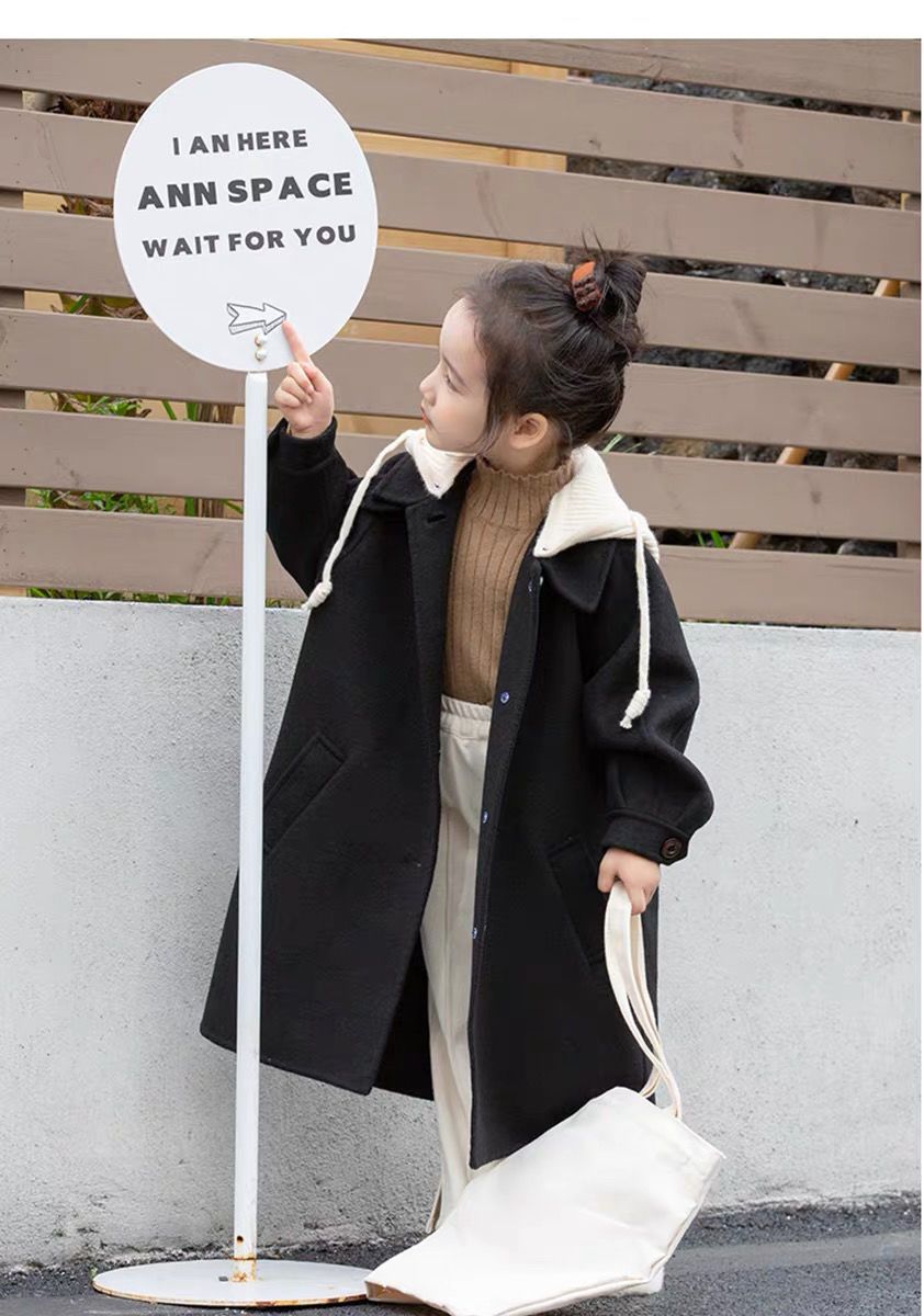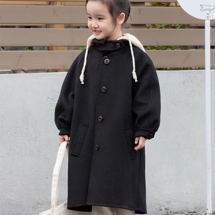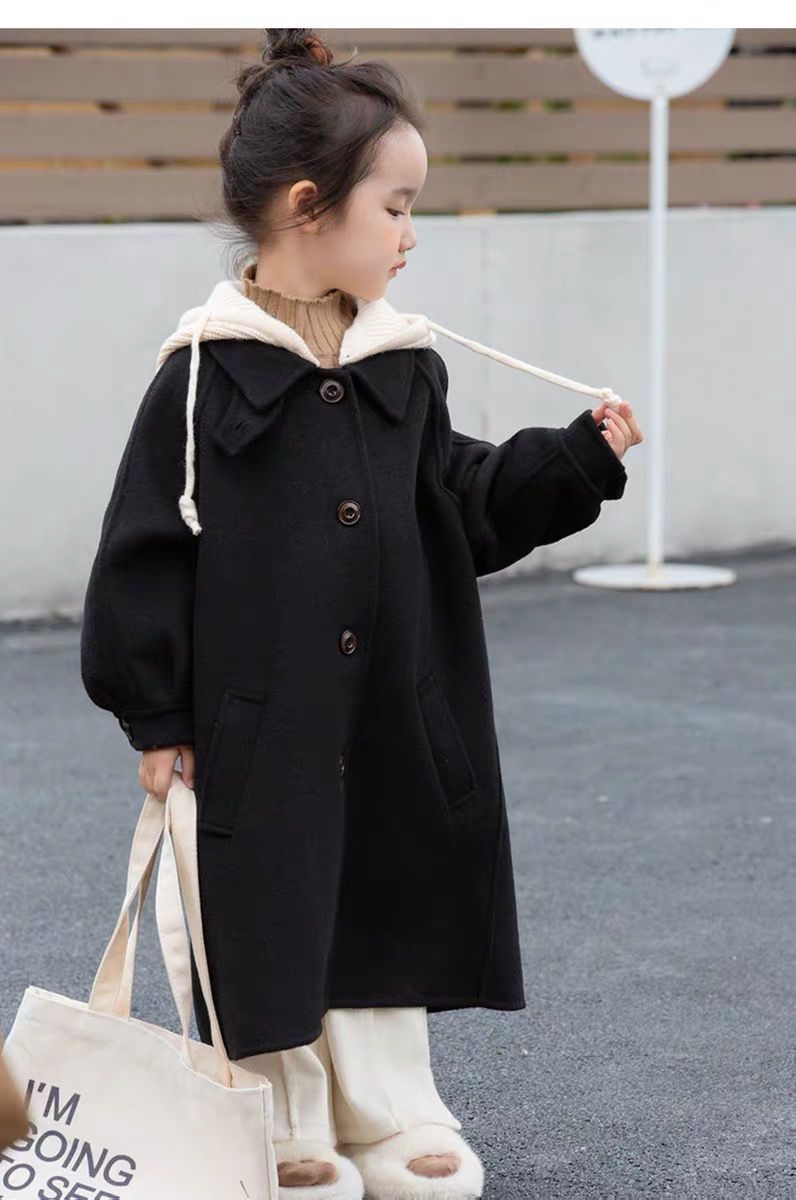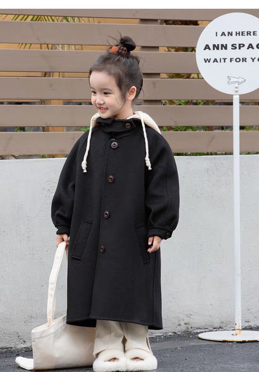 女童毛呢儿童大衣黑色童装韩版小个子女新款毛呢子春秋外套中男童