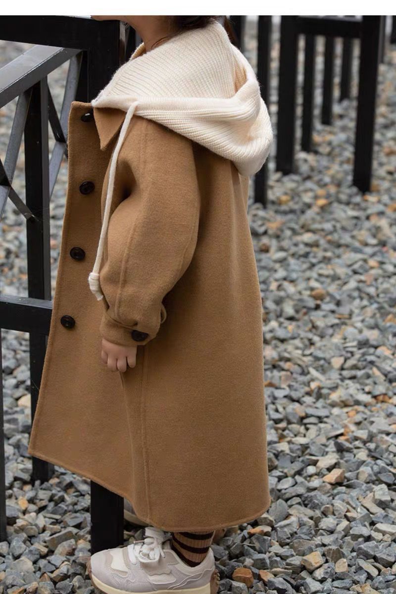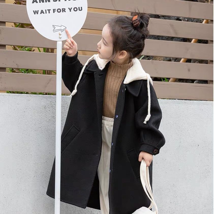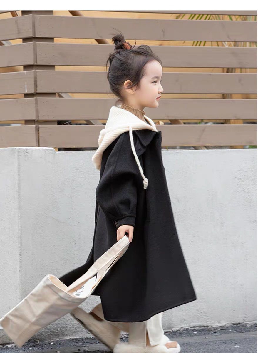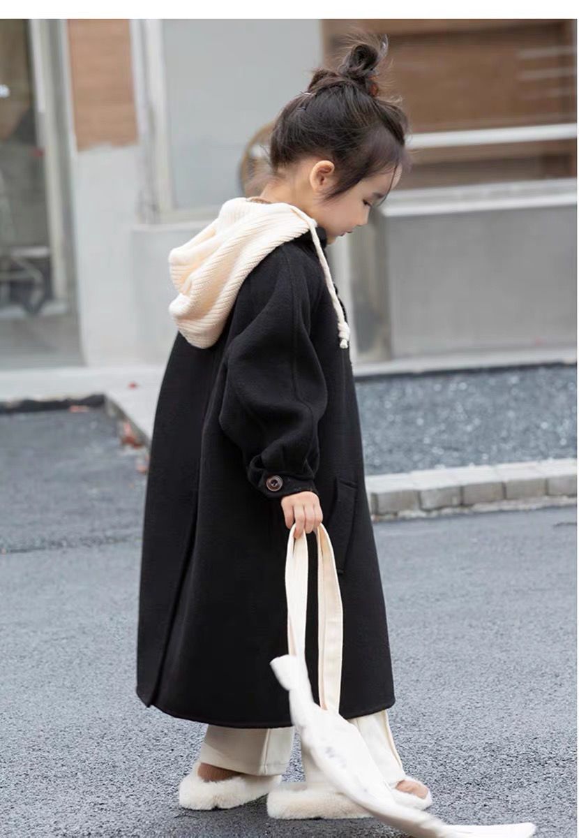 女童毛呢儿童大衣黑色童装韩版小个子女新款毛呢子春秋外套中男童