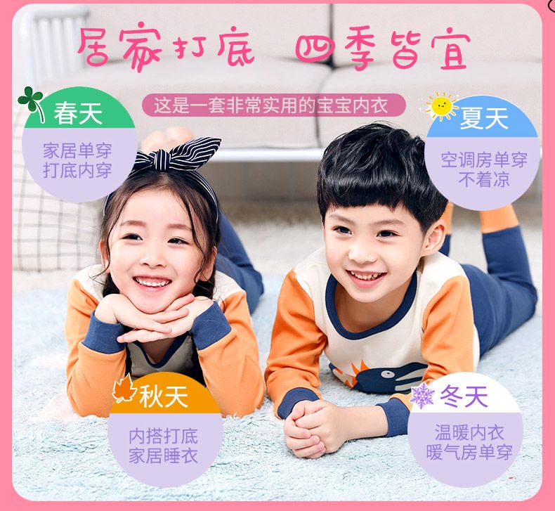 儿童内衣套装春秋纯棉薄款男童女童睡衣宝宝婴儿全棉保暖秋衣秋裤
