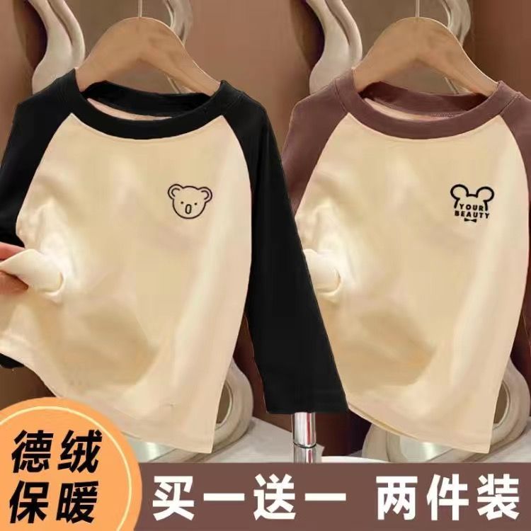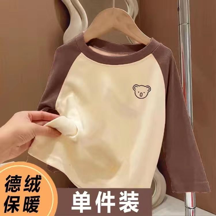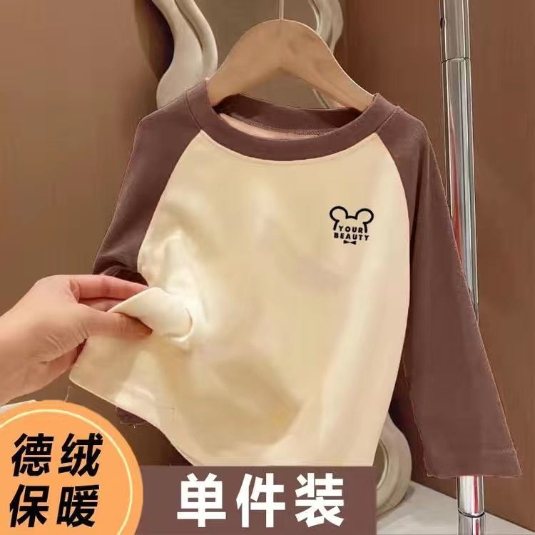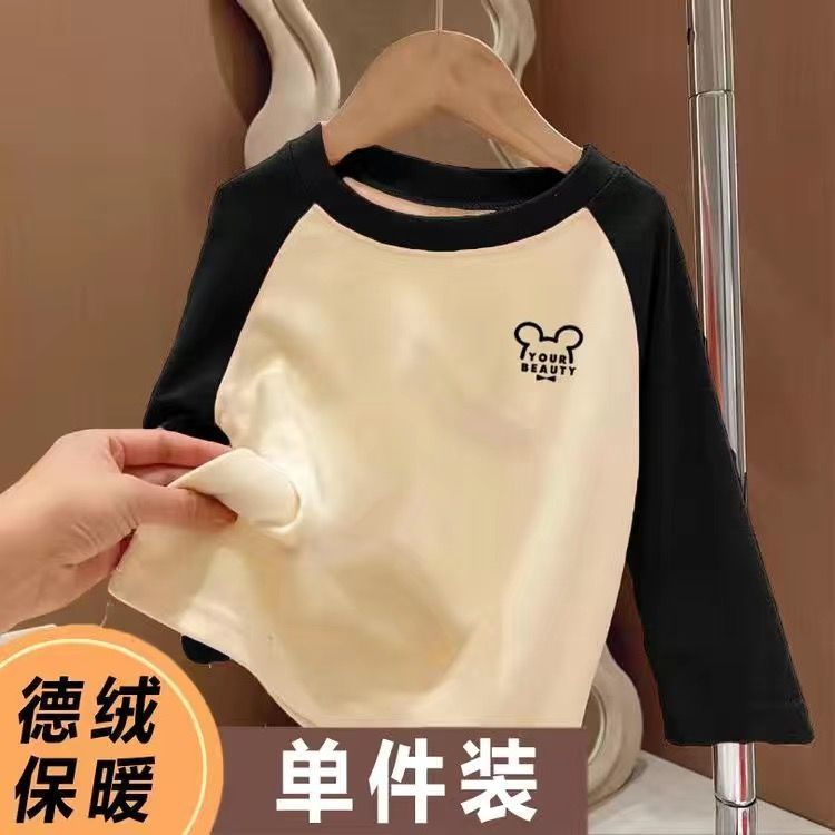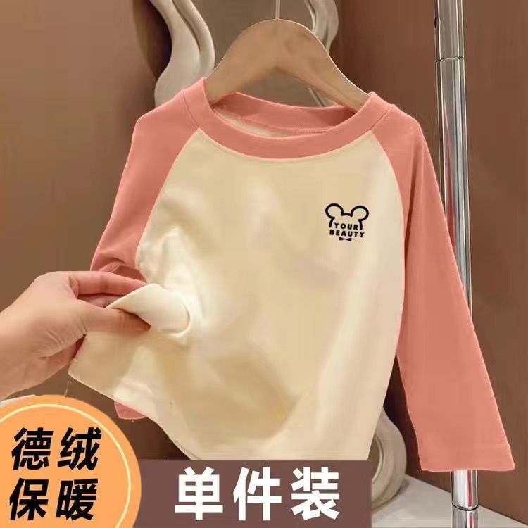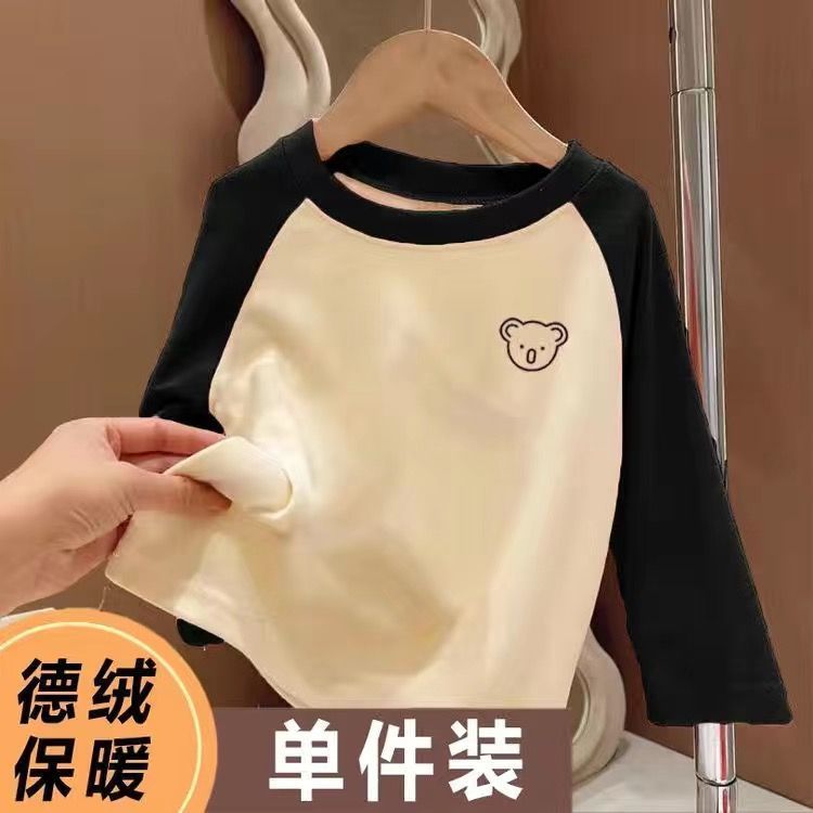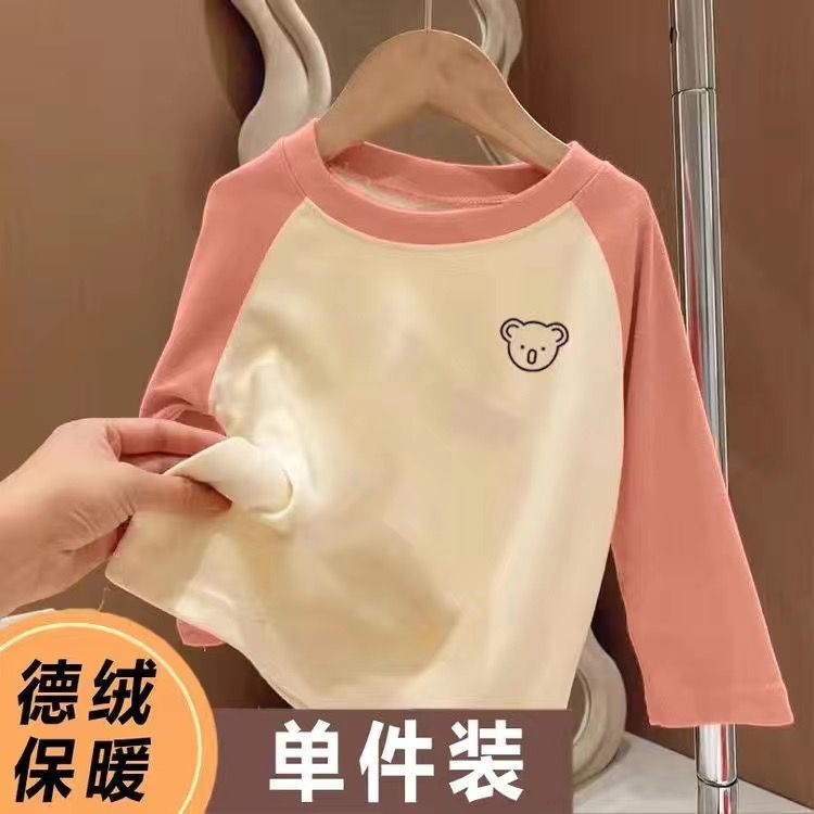 秋冬款德绒内搭男女童套头儿童打底衫中大童装长袖保暖中小童上衣