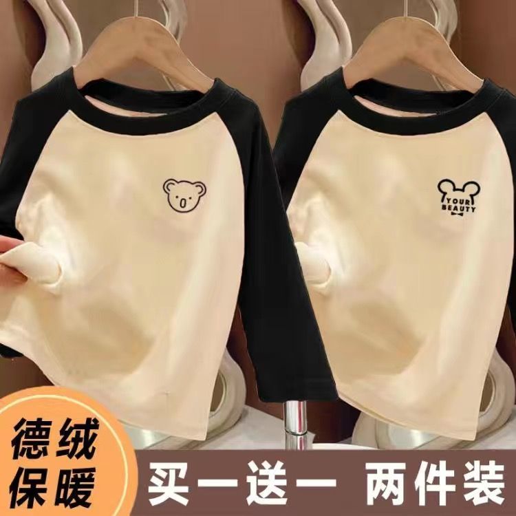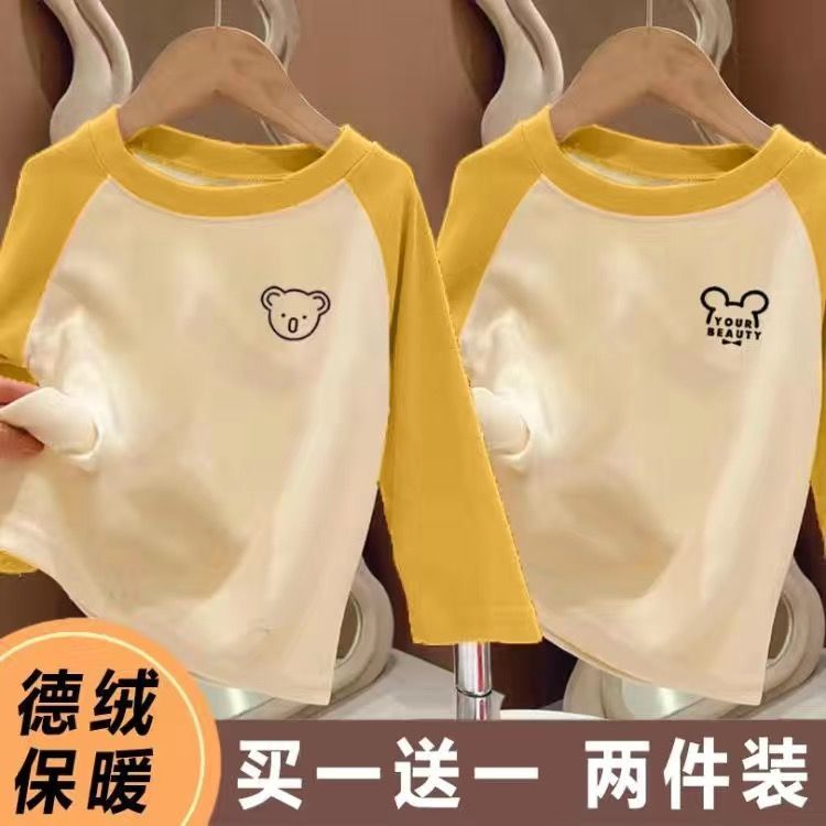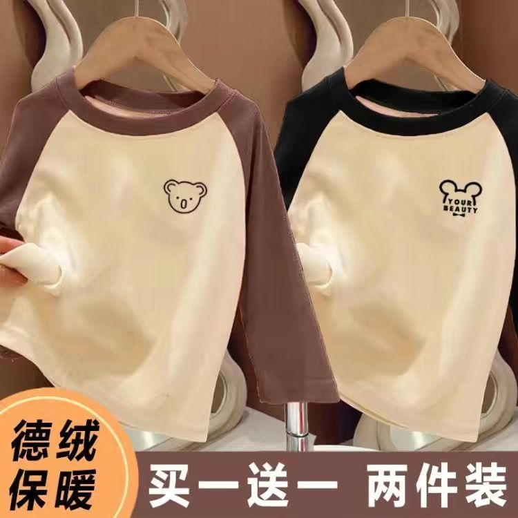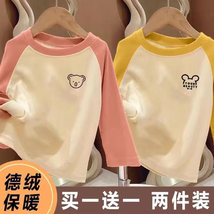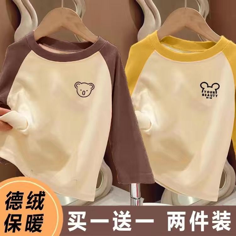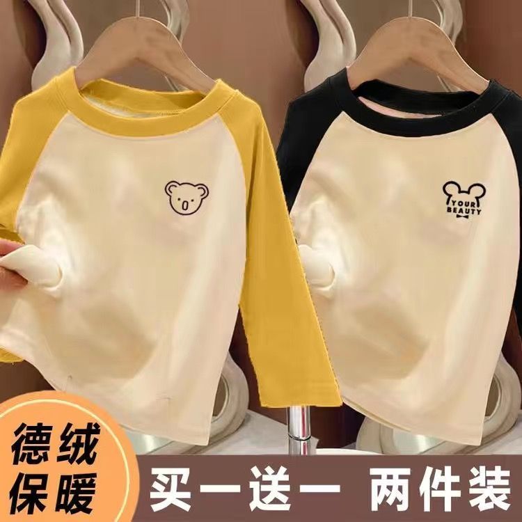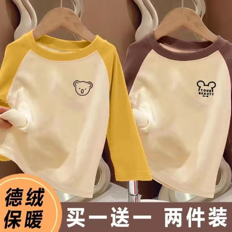 秋冬款德绒内搭男女童套头儿童打底衫中大童装长袖保暖中小童上衣