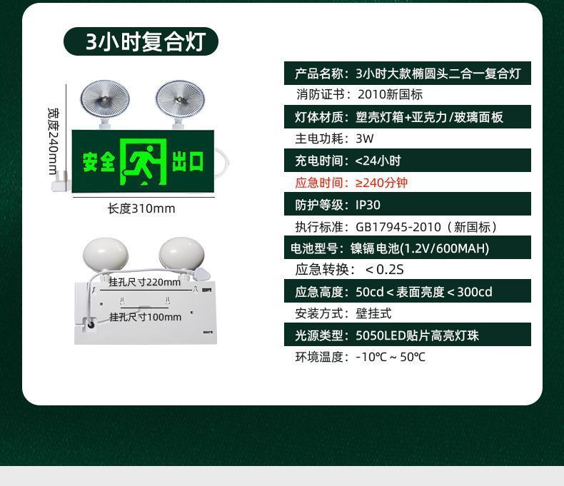 | 国标 3小时升级款复合灯【双向】 | USD $12.55 | 99999 piece available |