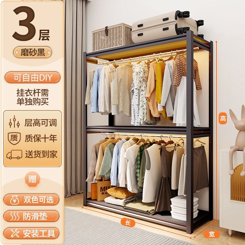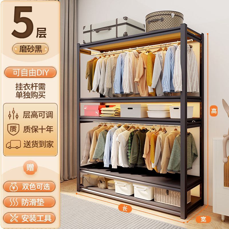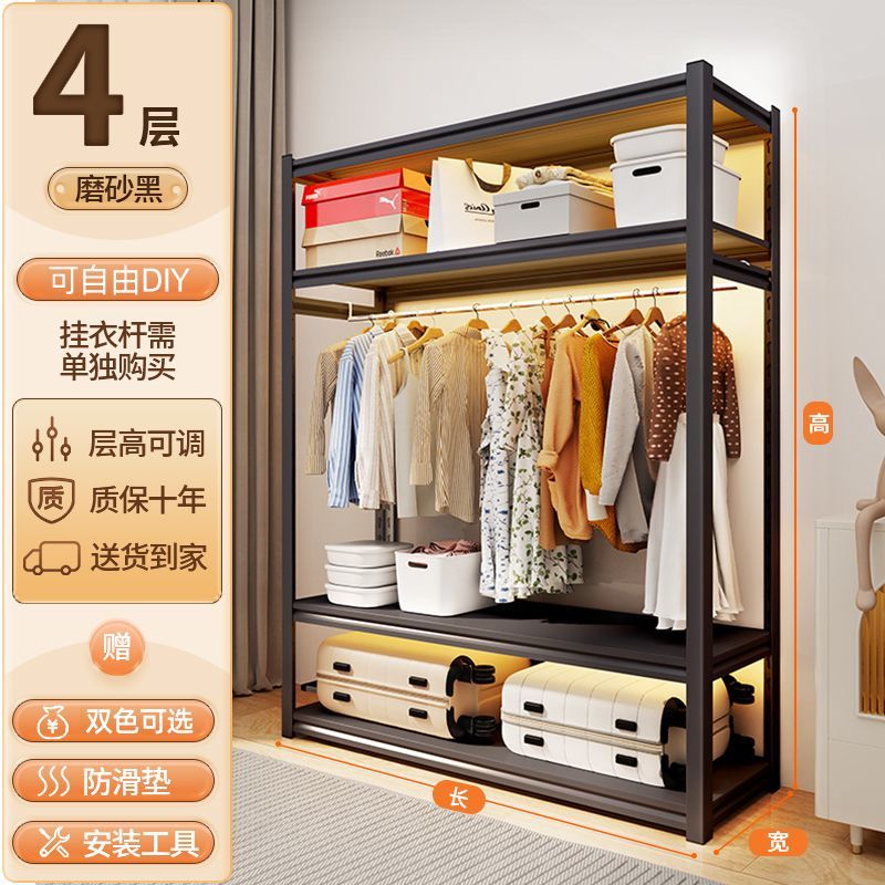 钢制开放式简易组合衣架宿舍卧室玄关家用多层可调节置物架衣帽架